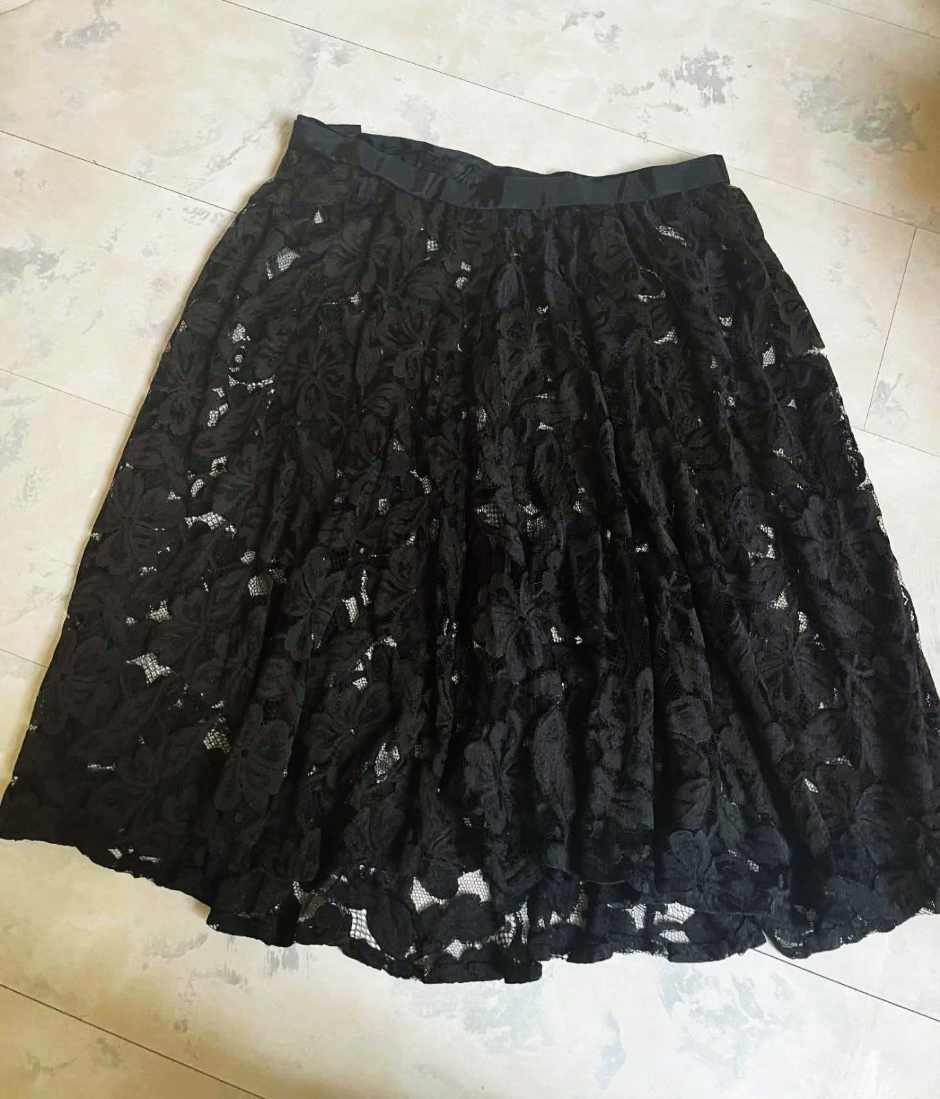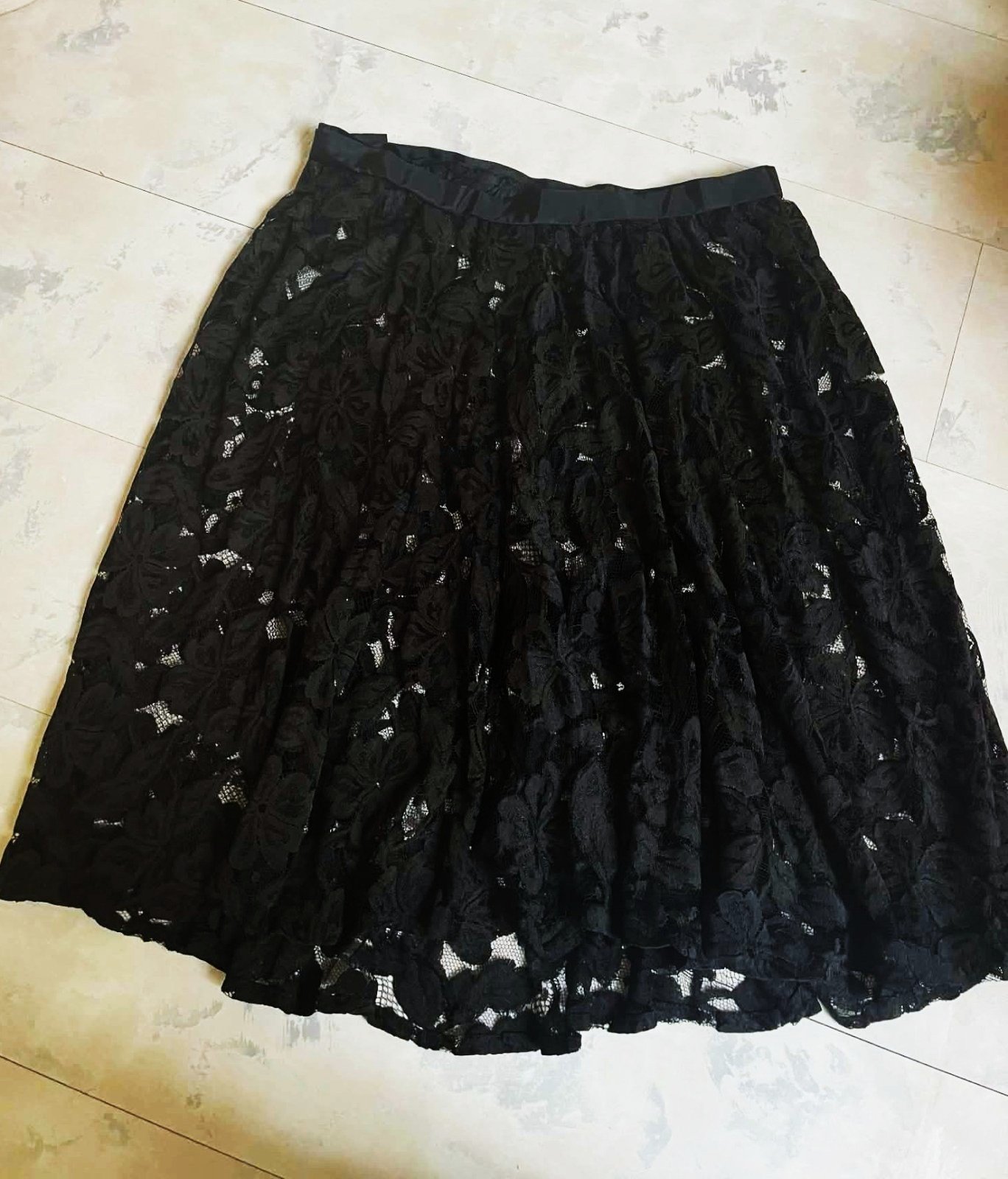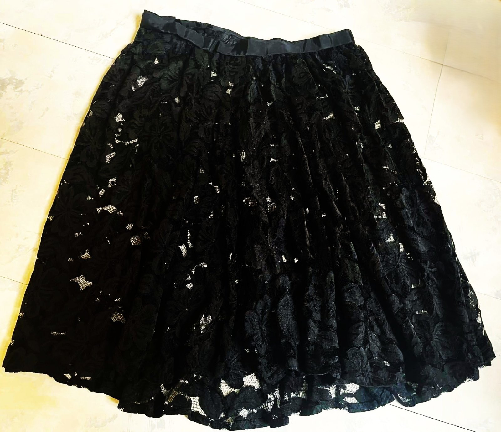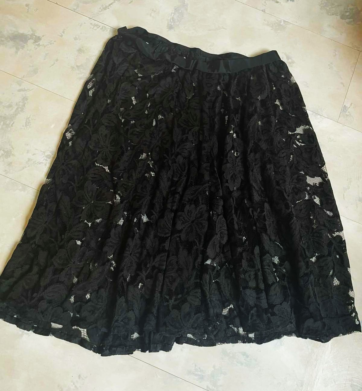 nosená krásna čipkovaná sukňa z nádhernej krajky,je riasená,kruhová, krajka je jemná,miestami je poškodená - vid foto,ale pri nosení,tým,že krásne padá a riasi sa to nie je vidno,preto aj prispôsobená cena,vhodná aj na latinsko - americké tance,je jemne priesvitná,pás je neukončený, dá sa upraviť,pás min. 40 x 2 cm,dlžka = 68 cm, spodný obvod sukne = 280 cm - strihaná do kruhu