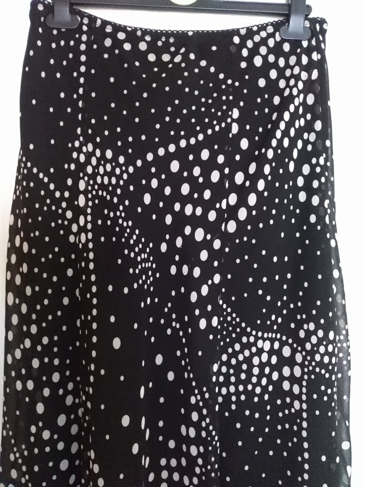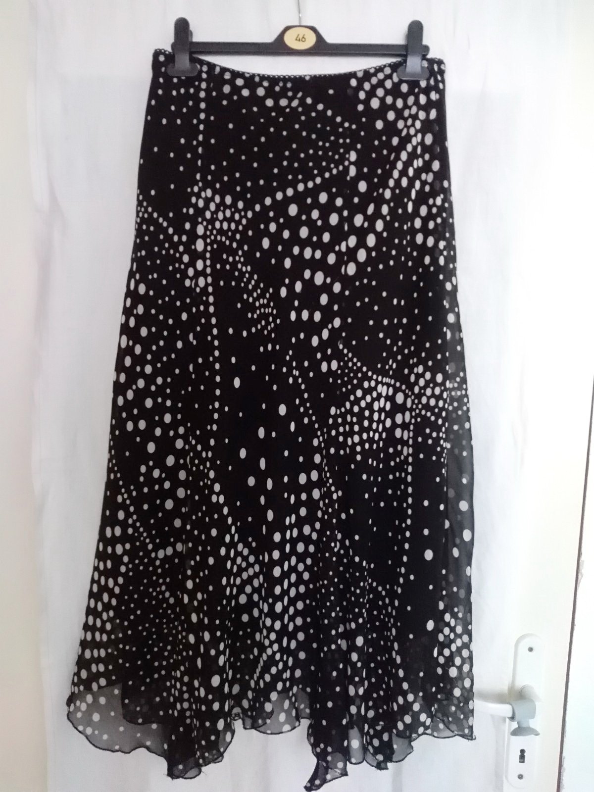 Čierna sukňa s gulkami v. M nosená, krásna, nepoškodená. Je ľahučká a podšitá čiernou látkou.