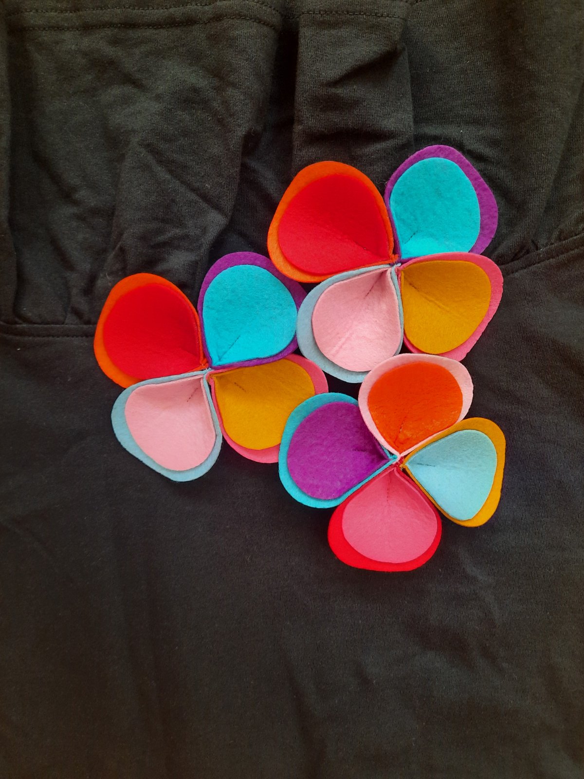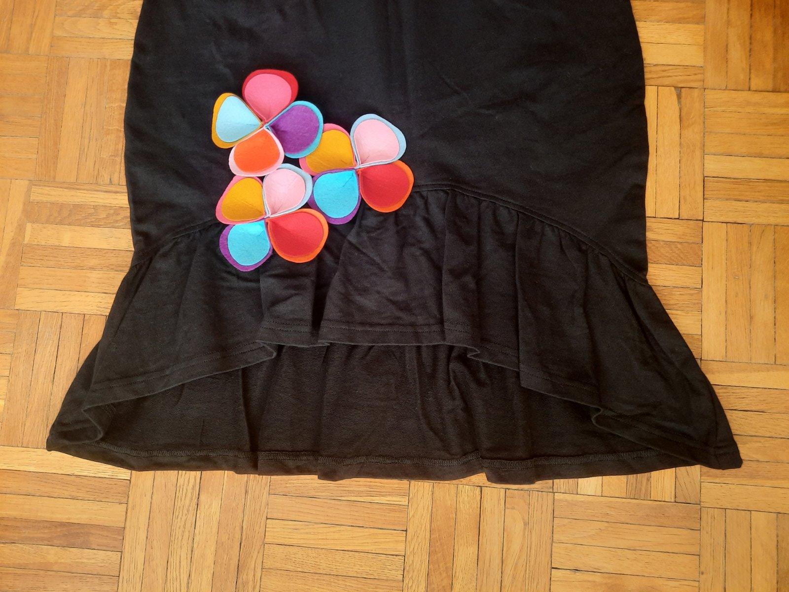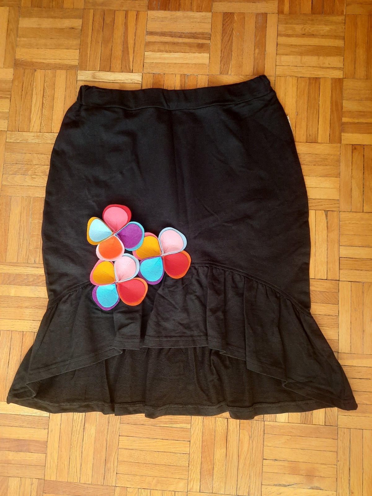 Krásna a veľmi zaujímavá úpletová sukňa. Pás je na gumu. Predná časť je kratšia, kde sú našité kvetiny z filcu. Na spodku je volán. Bola iba vypratá, top stav.