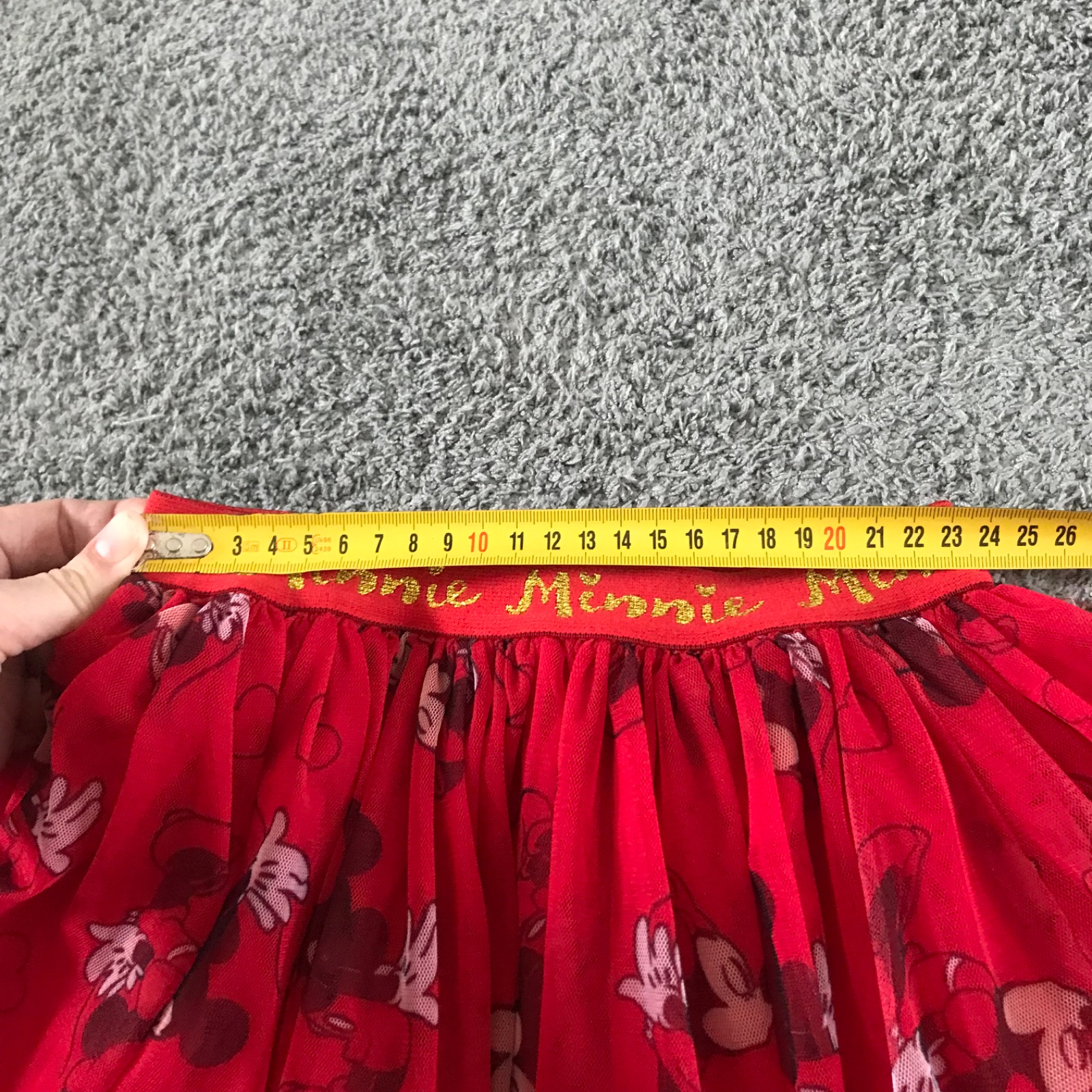 nosene malicko poskodenia som si nevsimla na tom s motivom Minnie pas nastavitelny pomocou gumicky rozmery dlzka 30cm pas 2*23cm az 2*33cm cena + posta