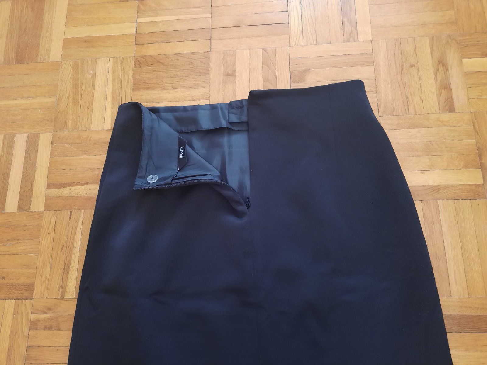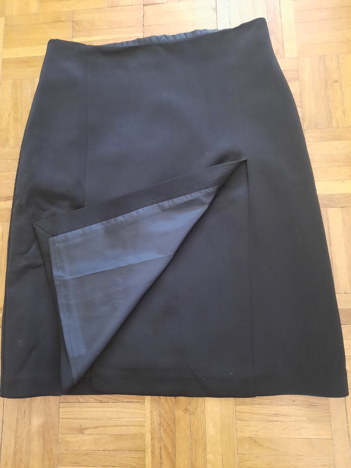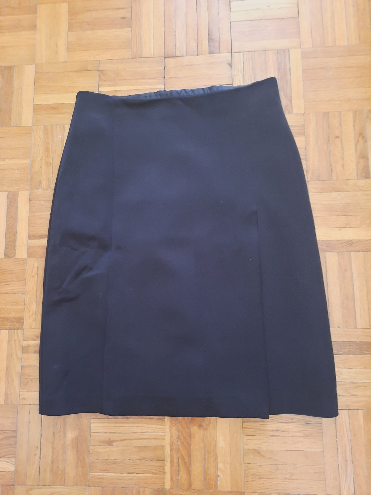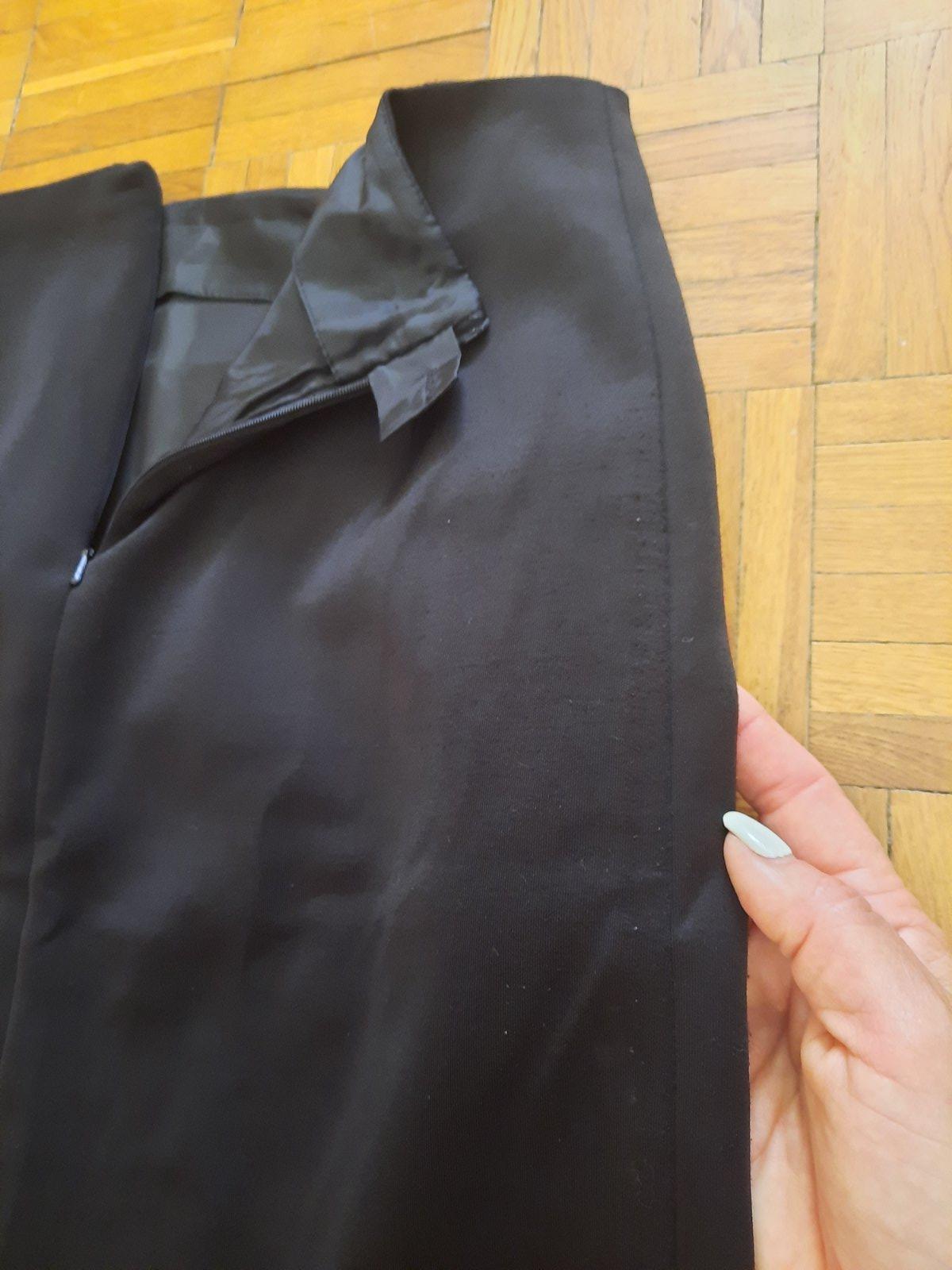 Pekná čierna podšitá sukňa. Vpredu je dlhší otvor/ rázporok, vzadu tiež taký malý. Zapínanie je na zips vzadu. Veľmi dobrý stav.