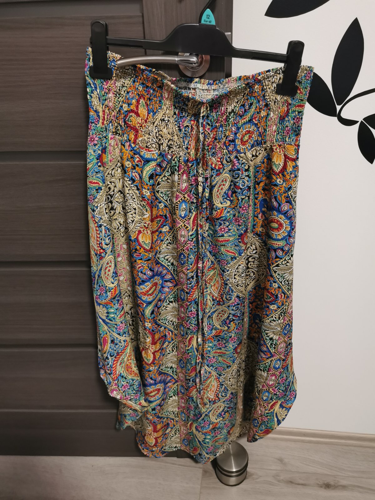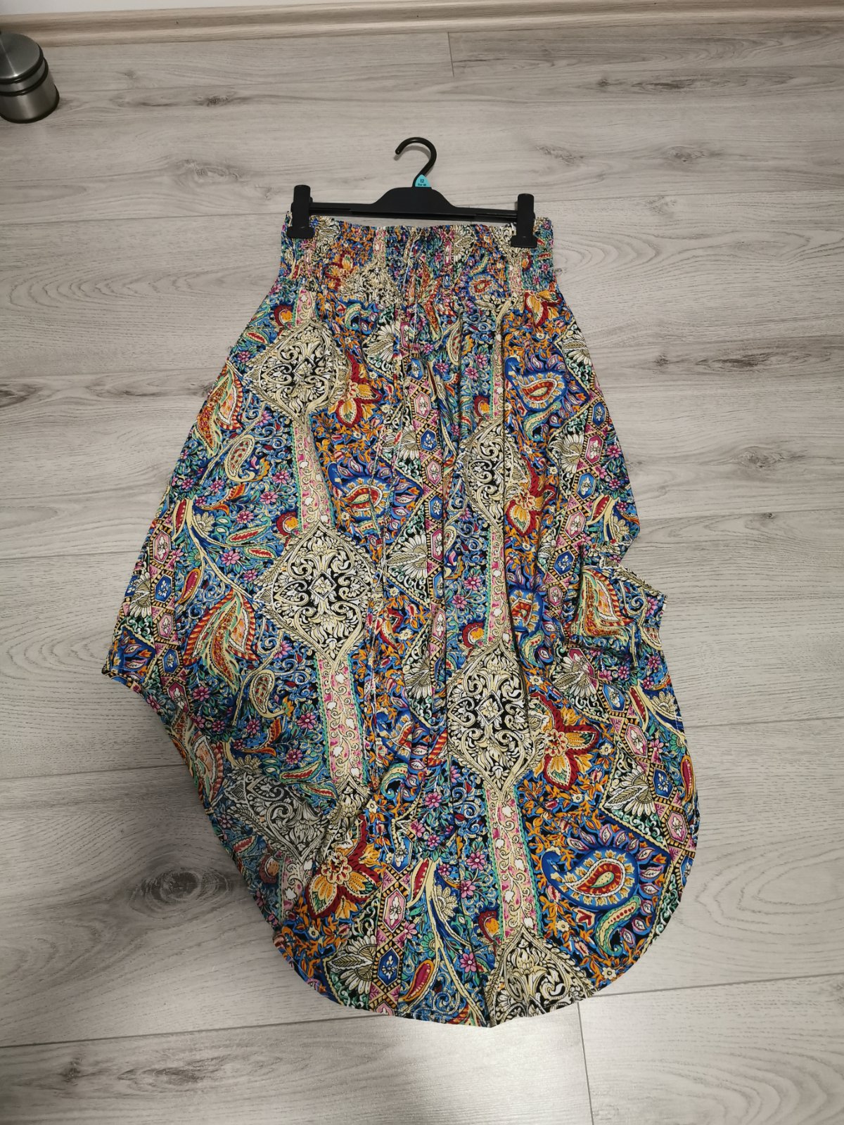veľmi pekná dlhá letná sukňa, pás do gumy, celoplošne podšitá, nosená len krátko bez akýchkoľvek poškodení....celk. dl. 90cm, pás od 2x30 do 2x45cm....pošt. a bal. 2,0 doporučene