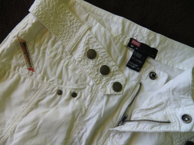 Biela bavlnená sukňa zn. Diesel Indrustrie - Denim division. Veľ.36, pás - bedrá 2x39cm, celková dlžka 29cm. Suknička má opasok, predné a zadné vrecká.
