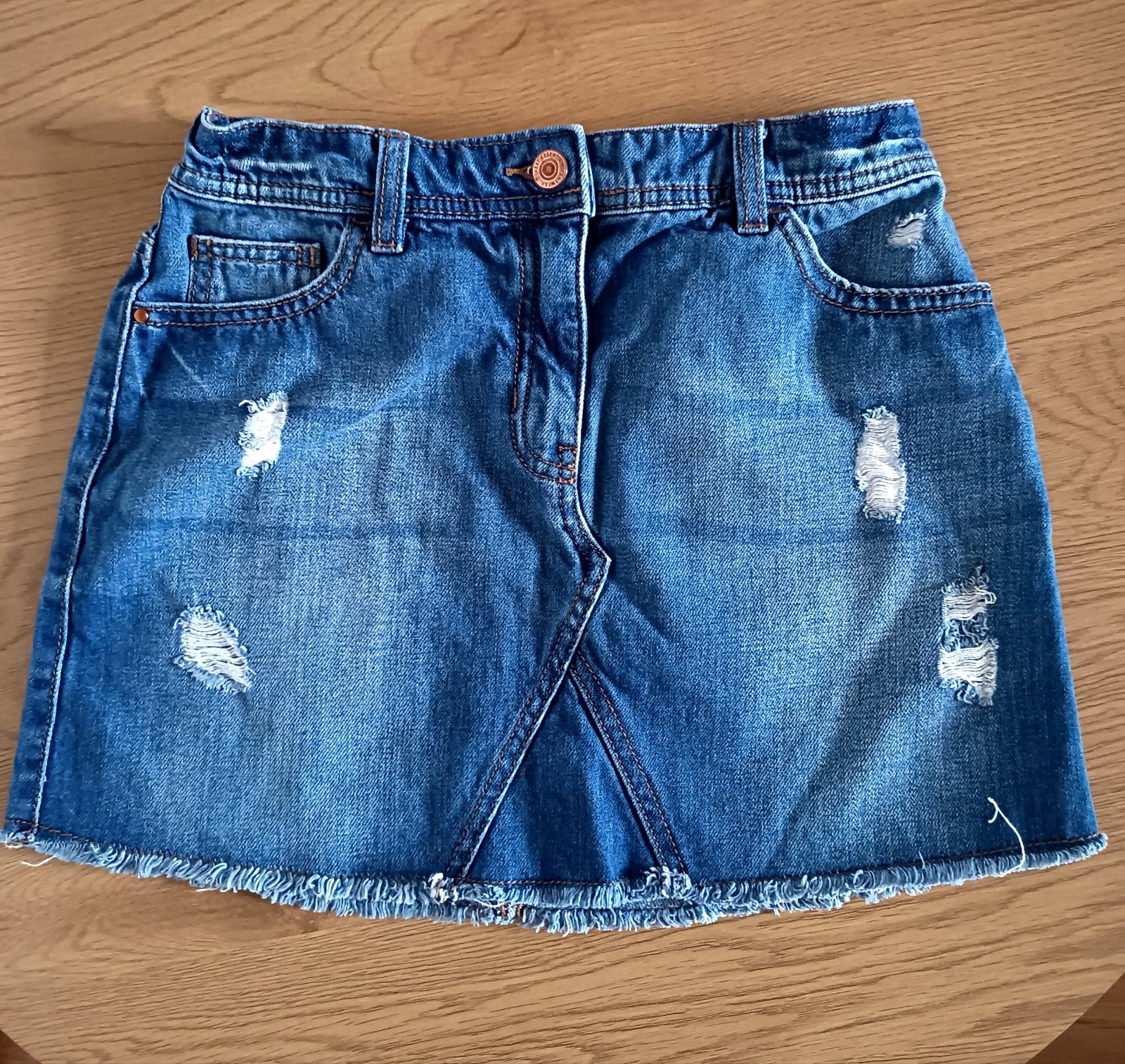 Denimova sukna s opaskom, vpredu gombiky, vrecka vpredu a na bokoch.