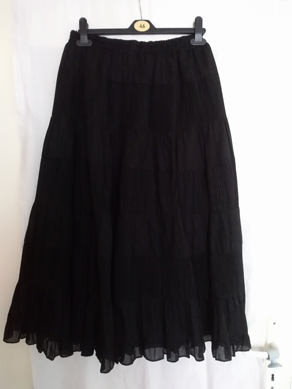 nosená málo, vyzerá ako nová. V páse na 2 gumičky. Pekná sýta čierna farba.Sukňa je taká ľahučká, nadýchaná ako pierko.