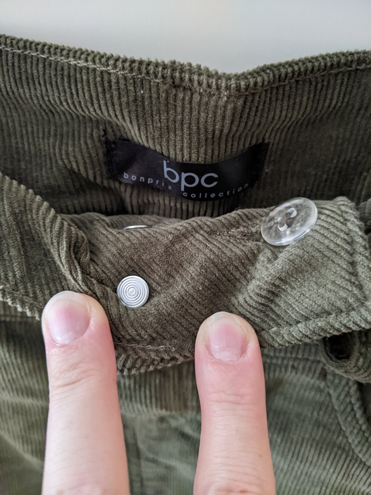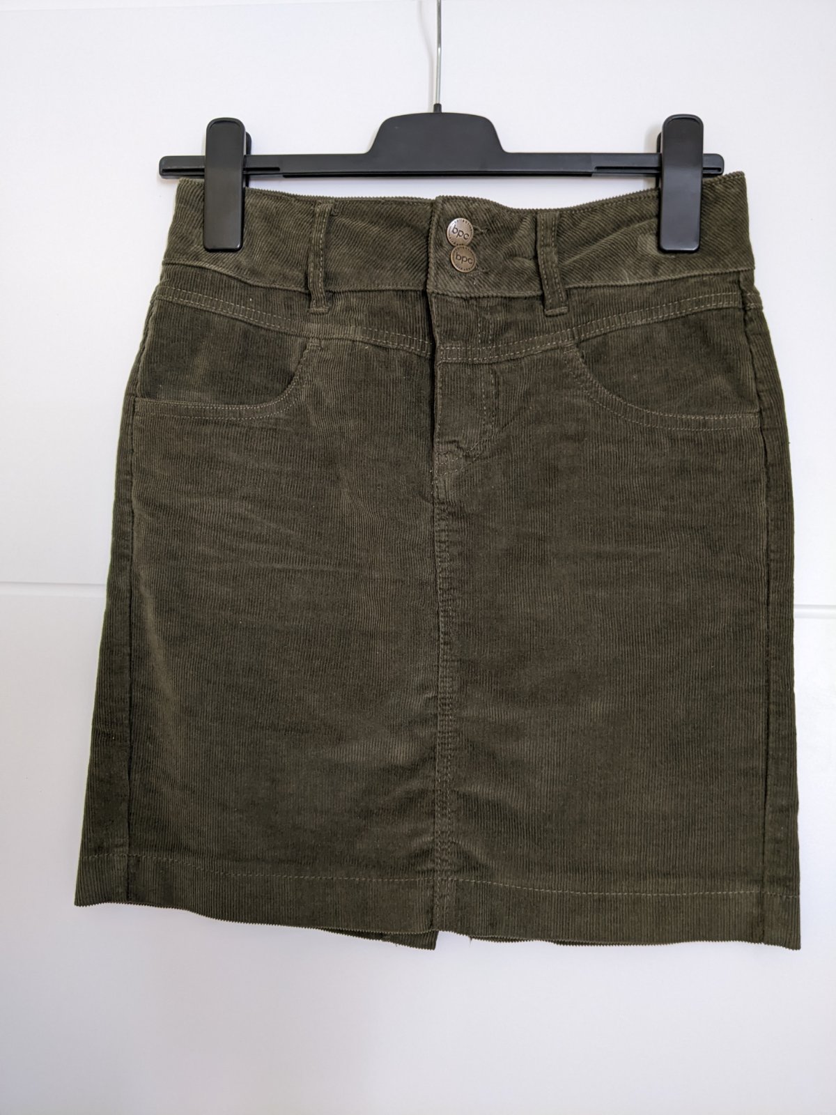 Kvalitne vypracovaná sukňa z mierne elastického menčesteru. Veľkosť písaná 34, ale reálne sa mi vidí na 36. Krásna sýta khaki olivová farba. V páse dva vonkajšie gombíky plus jeden vnútorný (viď foto). Je v stave ako nová, nakoľko som ju nestihla vynosiť a po tehotenstve mi už nevyhovuje. Rozmery: v páse 36 cm, dĺžka 45 cm.