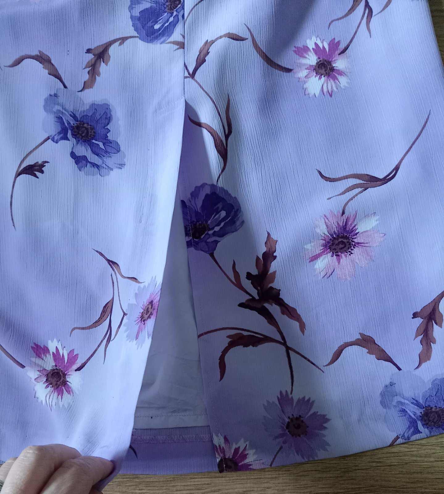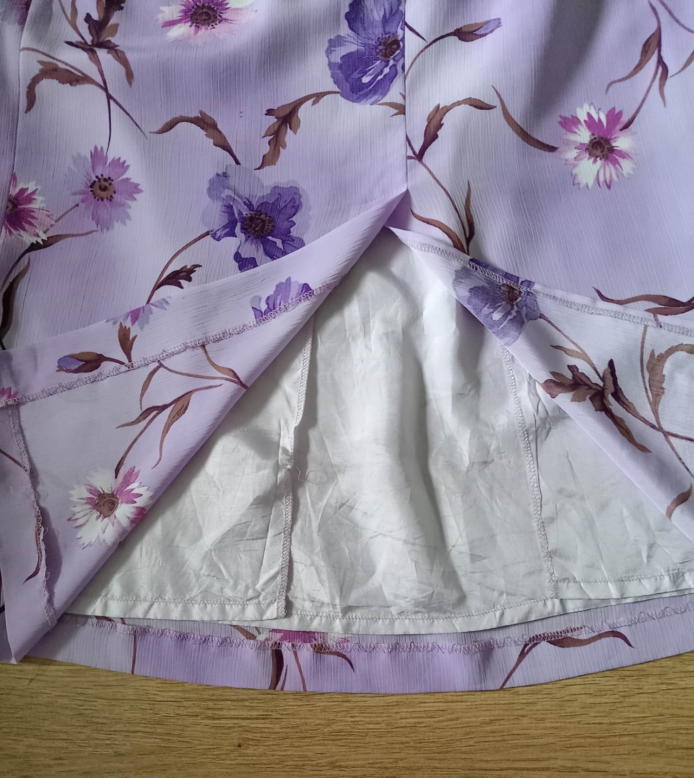 Nepriehľadná, podšitá, vzadu rozporok, v páse guma.