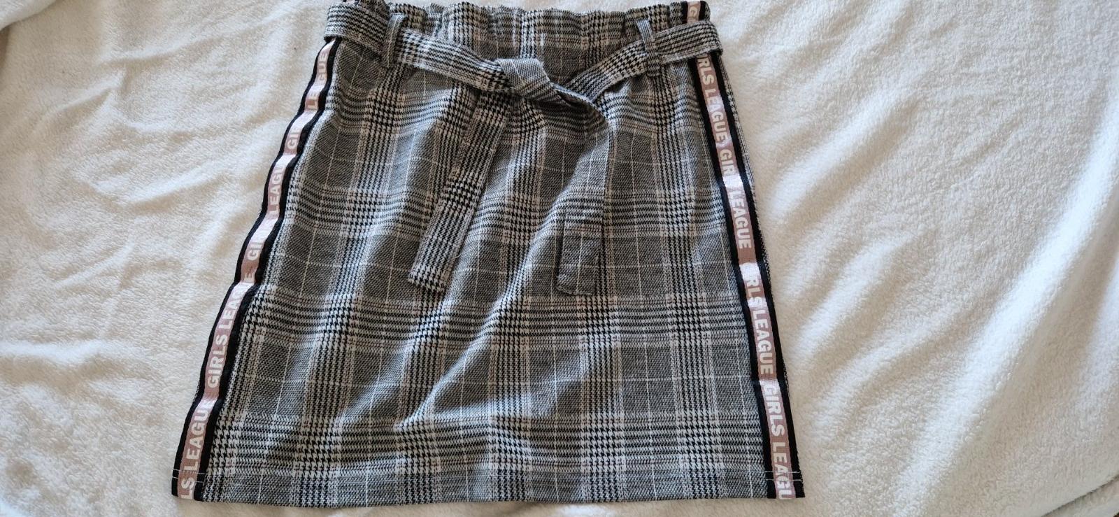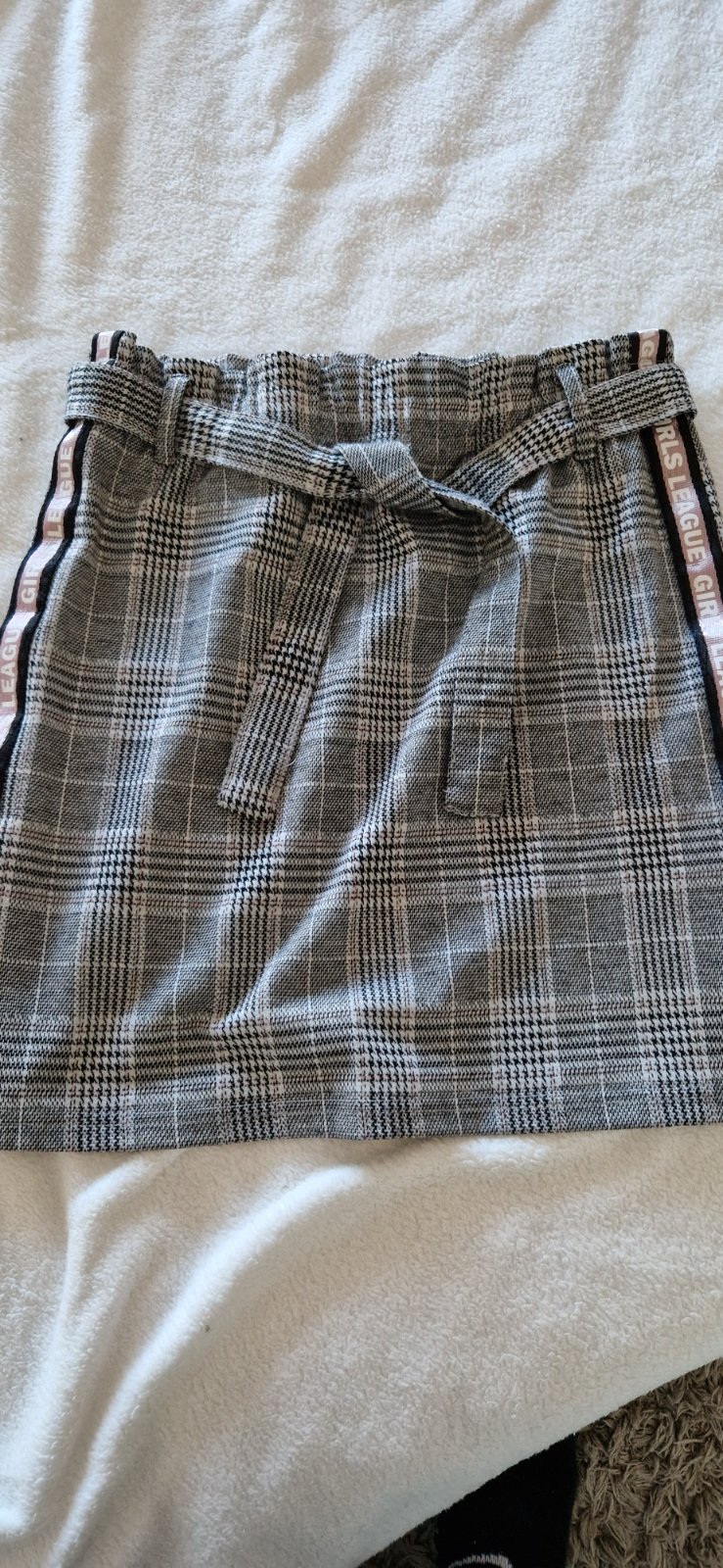 Ako nová, bez poškodení. S fialovými metalickými bodkami na prednej strane. Veľkost 27, t.j. taká cca 164/170. Rozmery: pás 39 cm, celková postranná dĺžka 43 cm, boky 46 cm.