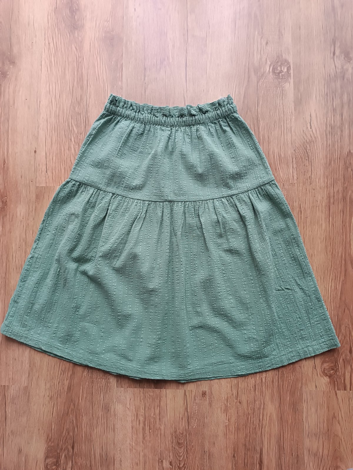 Predám použitú, krásnu sukničku z H&M, veľ.140, v páse guma, jednoduché obliekanie, vhodné aj na slavnostnejsiu príležitosť, rozmery - pás 30 cm, d 57 cm.