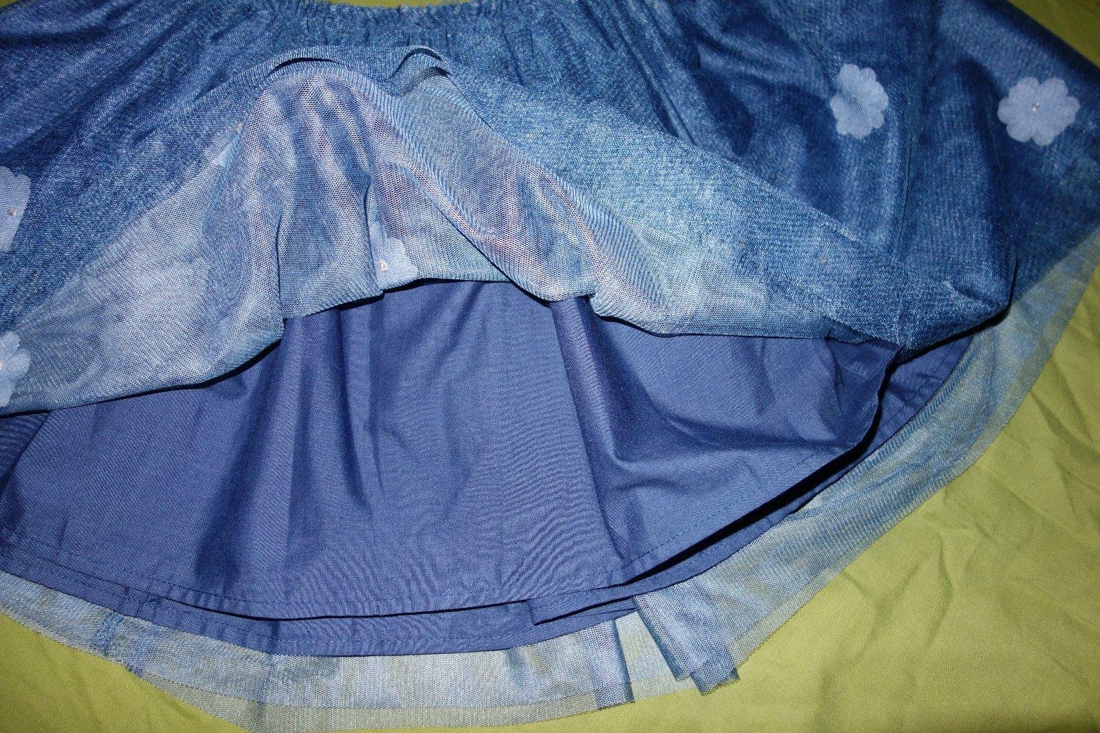 Krasna suknicka indigovej farby- nova, s visackami. Maju dve tylove vrstvy a tie kvietky su nasite na taj spodnejsej vrstve tylu, takze ich este jedna vrstva tylu prekryva.