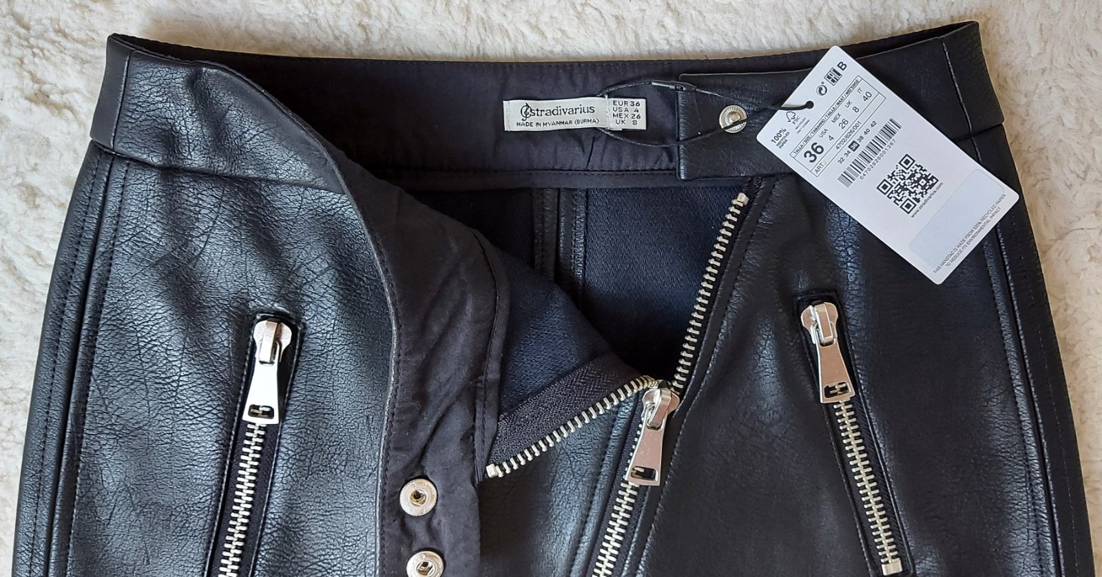 Sedí na užší pás, skôr veľkosť 34.