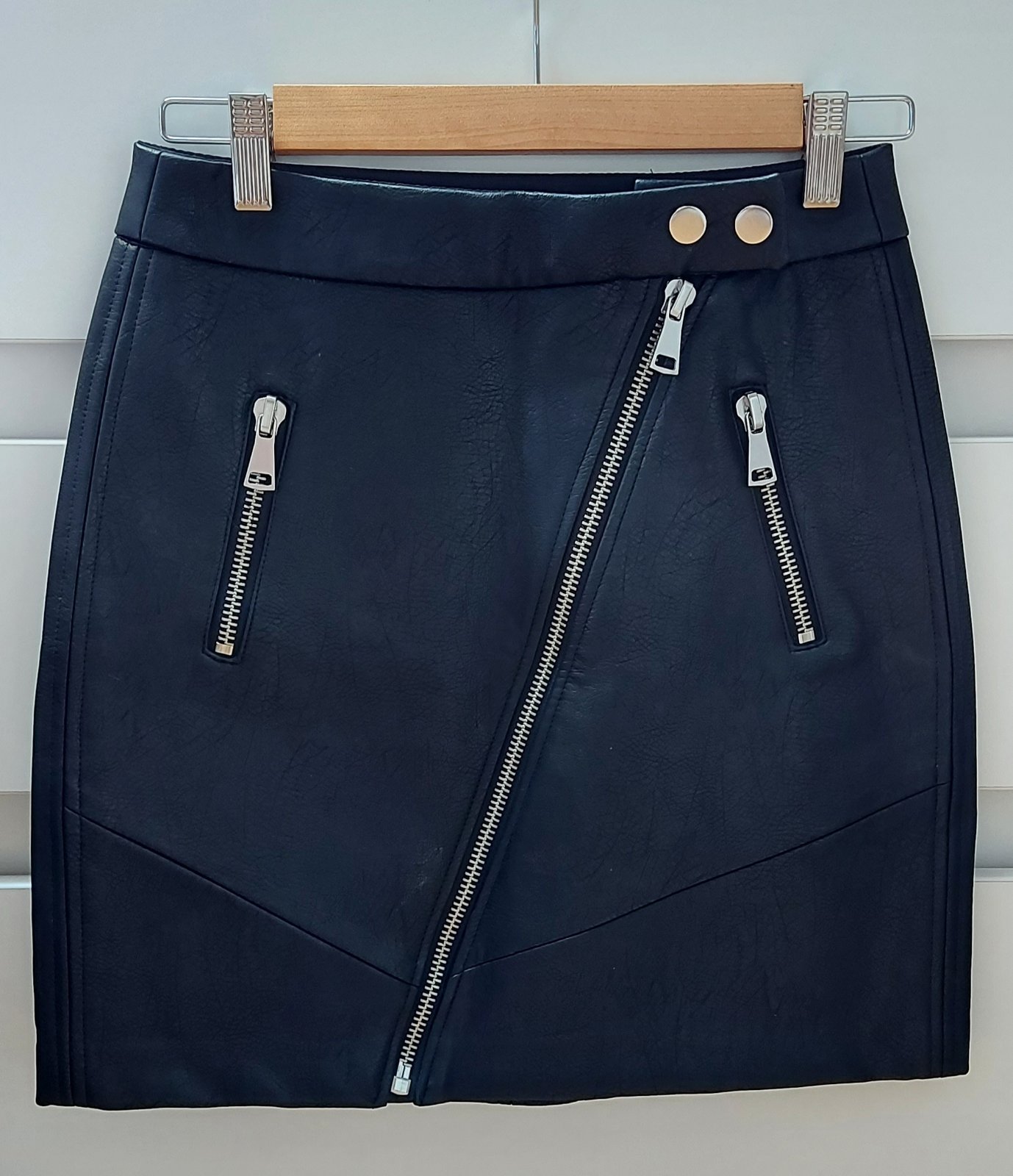 Koženková sukňa so zapínaním na zips a gombíky. Nenosená, top stav s výsačkou.