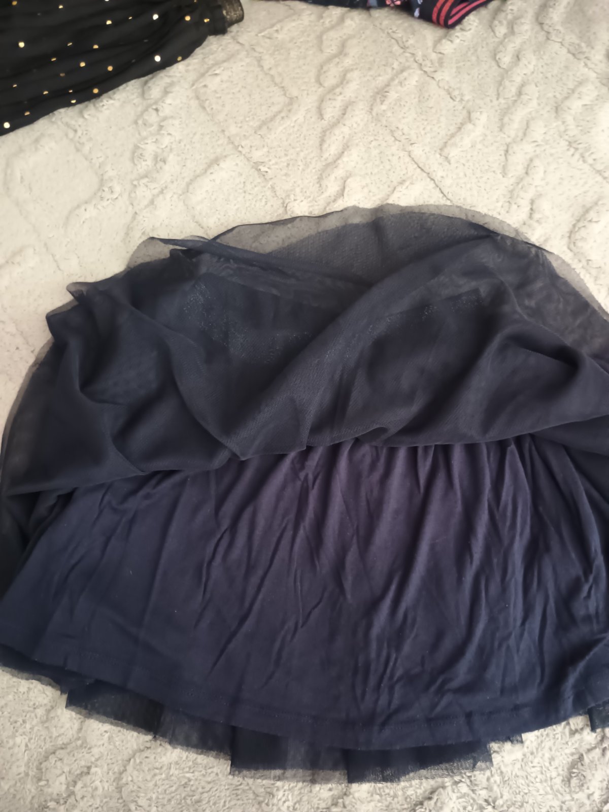 Veľmi pekná mäkká tylová sukňa s niekoľkými vrstvami a ligotavým gumeným pásom. Sukničk aje v 100% stave bez poškodenia.