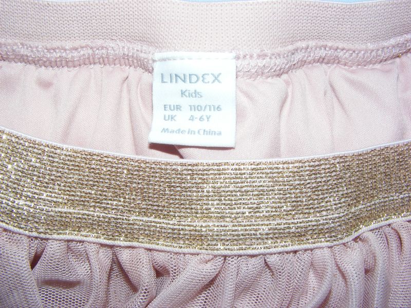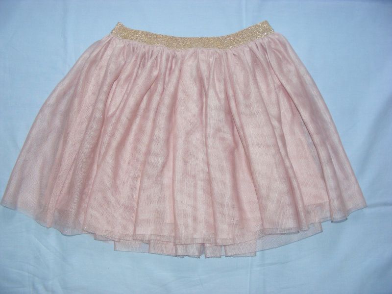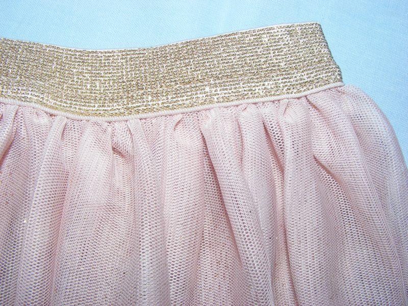 Tylová sukňa zn. Lindex so zlatými trblietkami a zlatým trblietavým elastickým pásom, podšitá saténovou spodničkou.