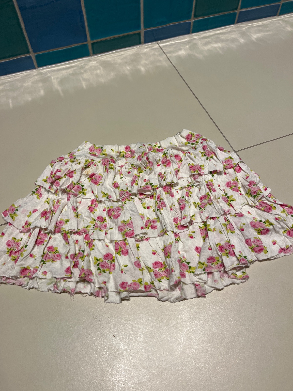 Malo nosena suknicka z pevnejsej bavlny, vrecka vpredu aj vzadu, zapinanie gombik+zips. Dl. 26cm, sirka dole 32 cm, pas nastavitelny gumickami.