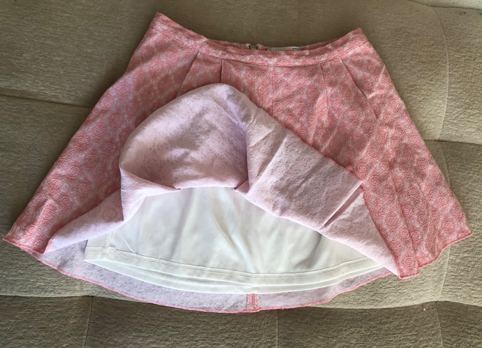 - cca 2 - 3x nosená bielo - ružová čipkovaná sukňa