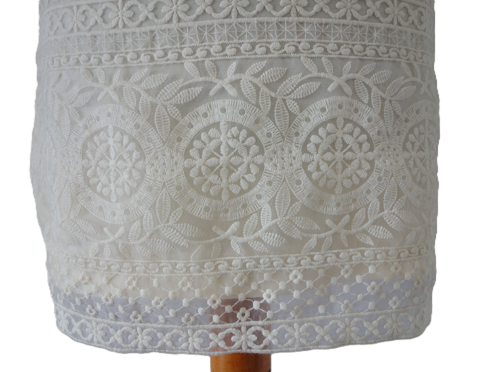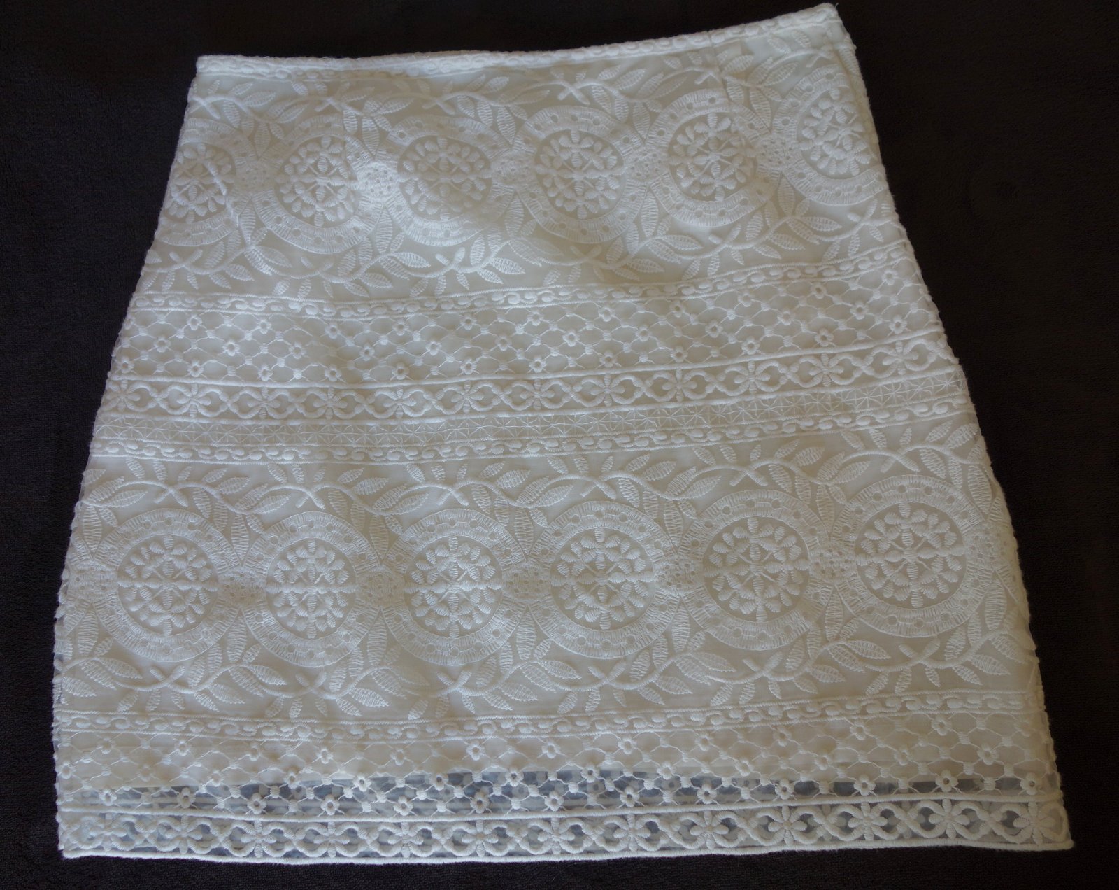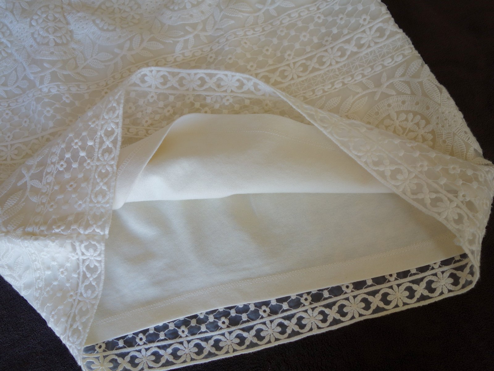 Sukňa je dvojvrstvová, spodná látka je nepriesvitná, vrchná vyšívaná čipka.