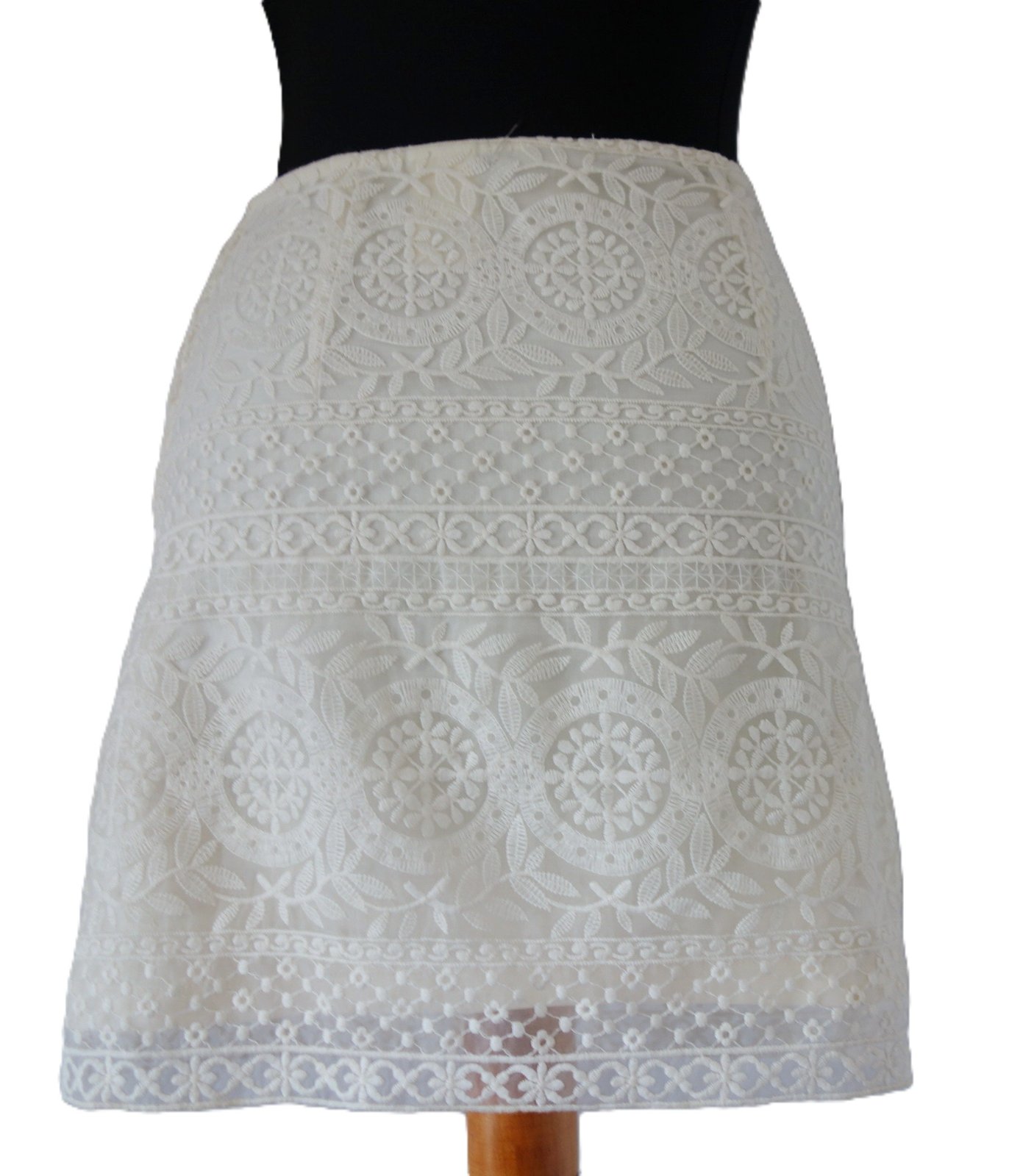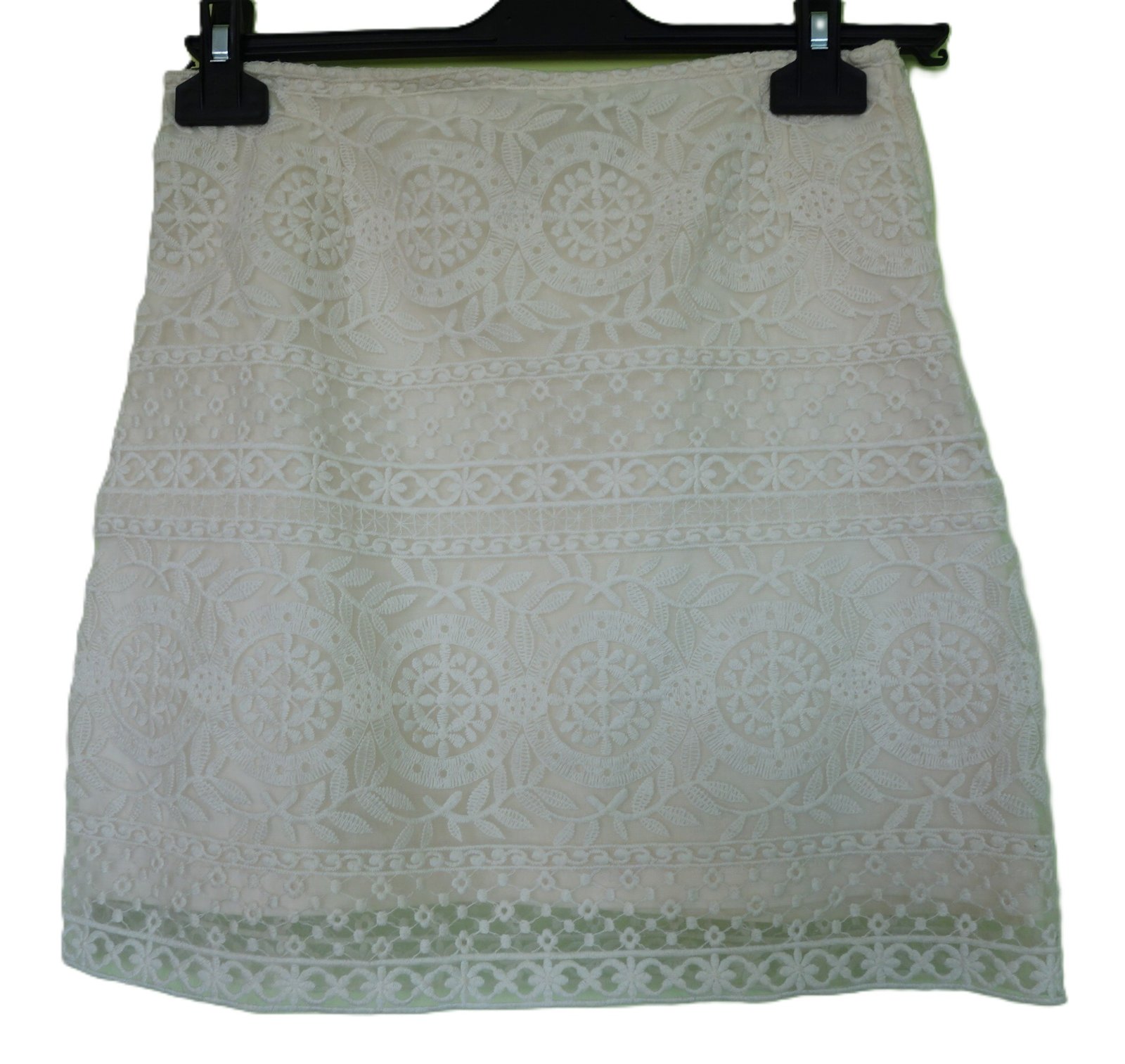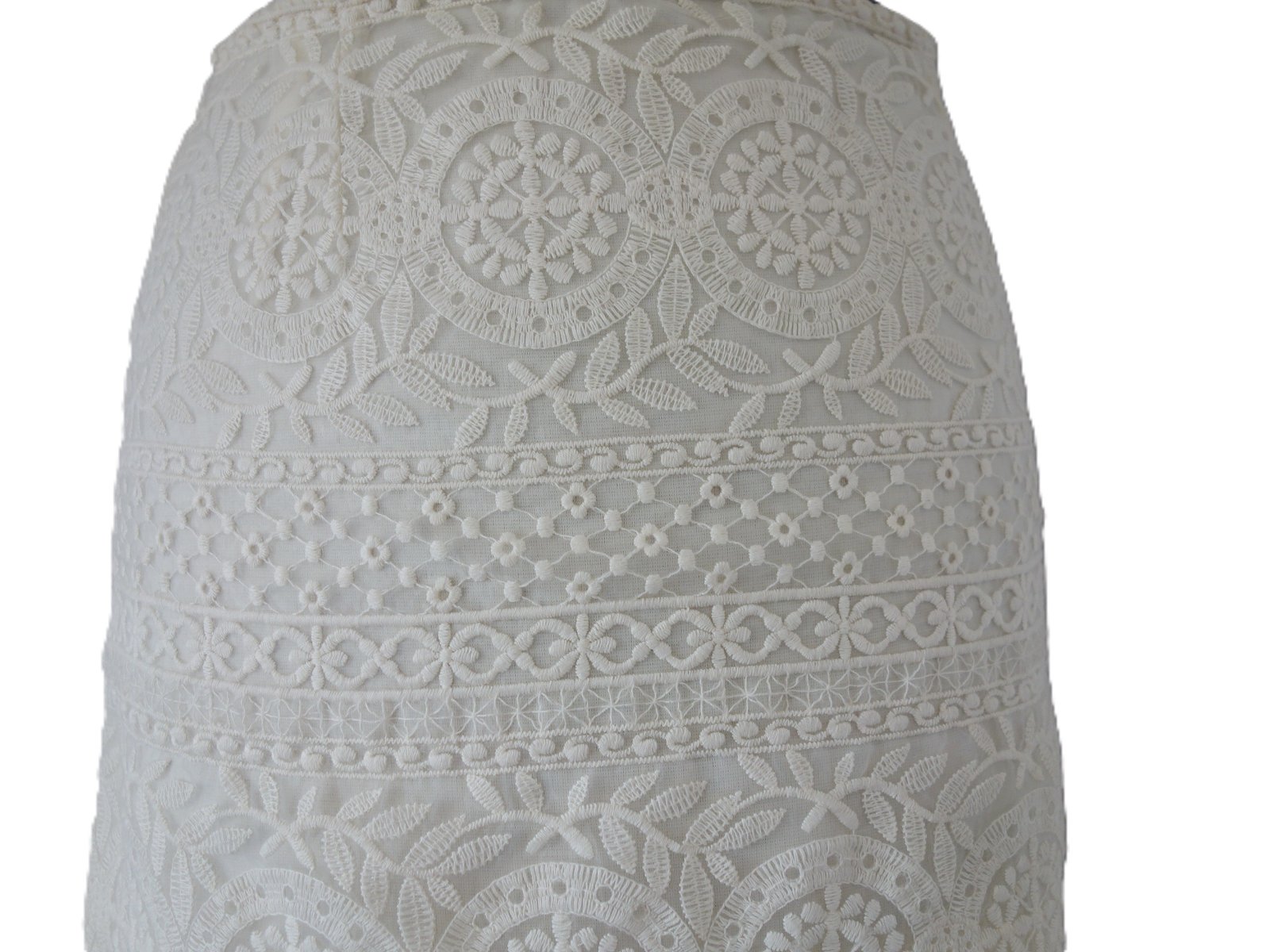 Sukňa je dvojvrstvová, spodná látka je nepriesvitná, vrchná vyšívaná čipka.