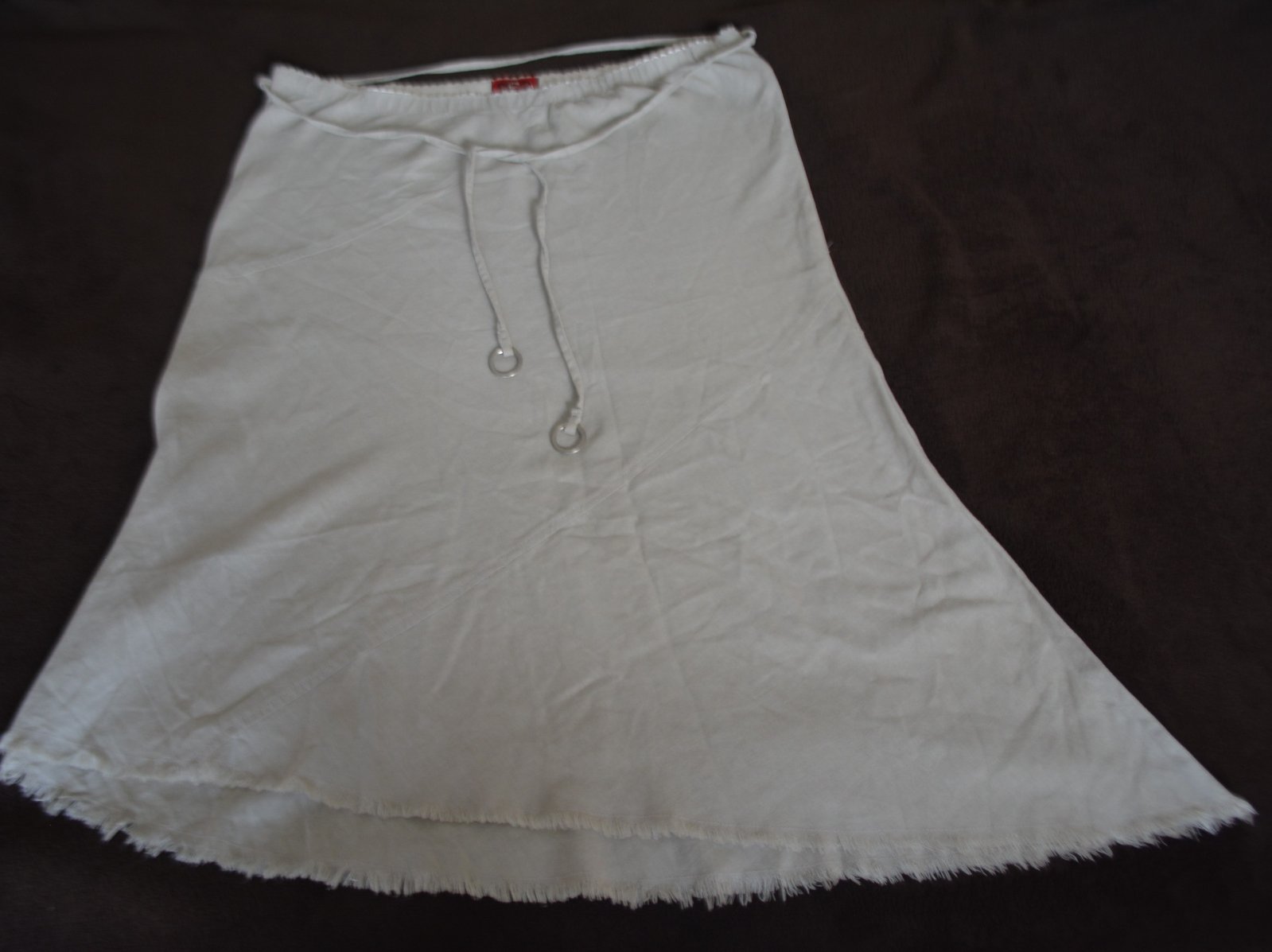 Bavlnená asymetrická sukňa, veľkosť označená XL- sedí aj na L - riaďte sa rozmermi: dĺžka na jednom boku 62cm druhá strana má 75cm, pás do 2x45cm.