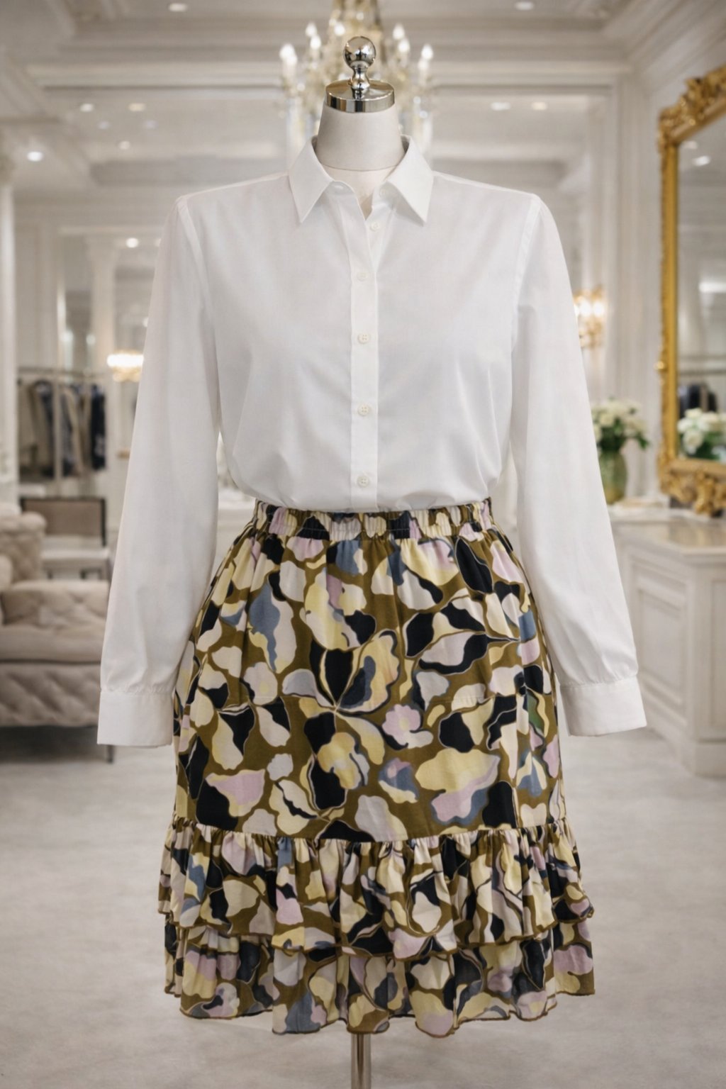 Veľmi ženský strih s volánikmi dodáva sukni ľahkosť a romantický vzhľad.