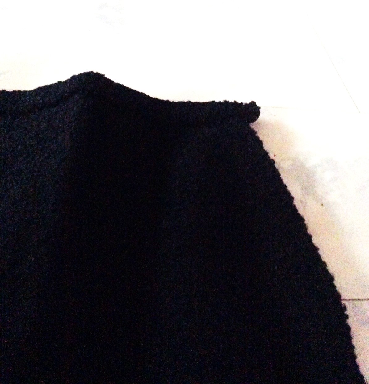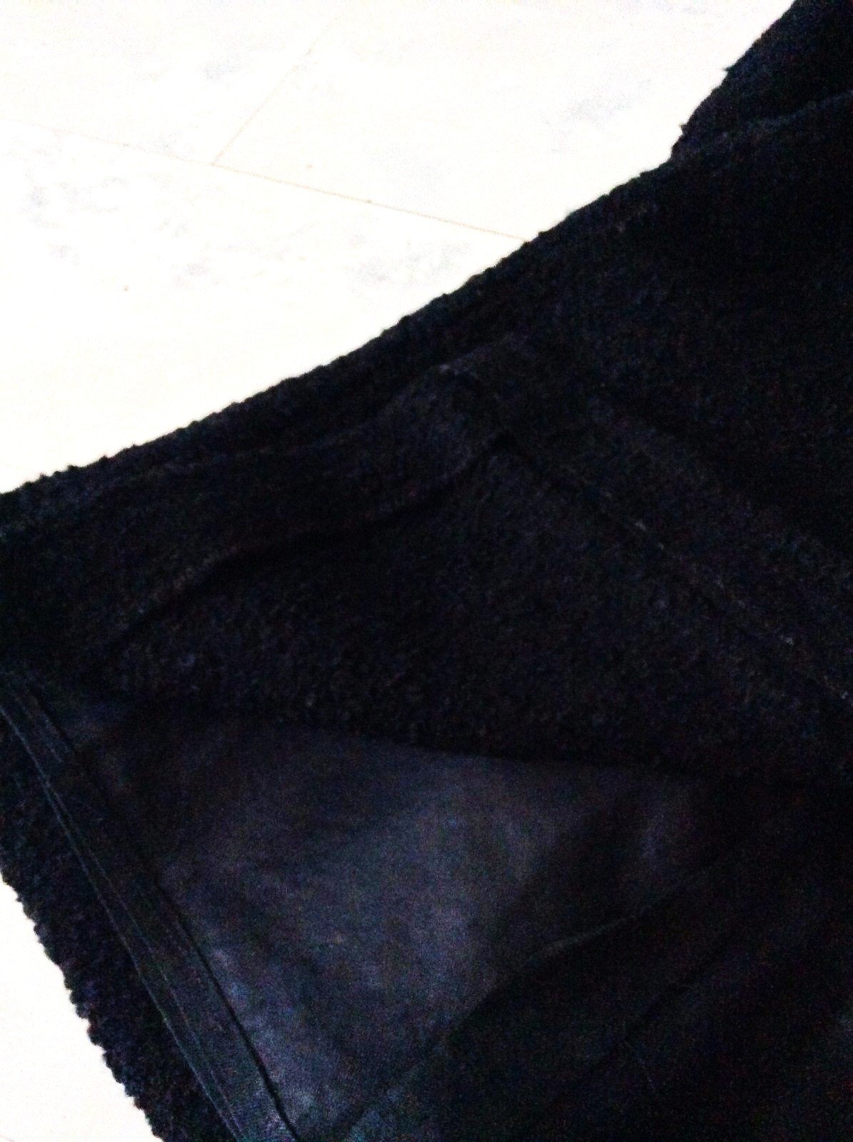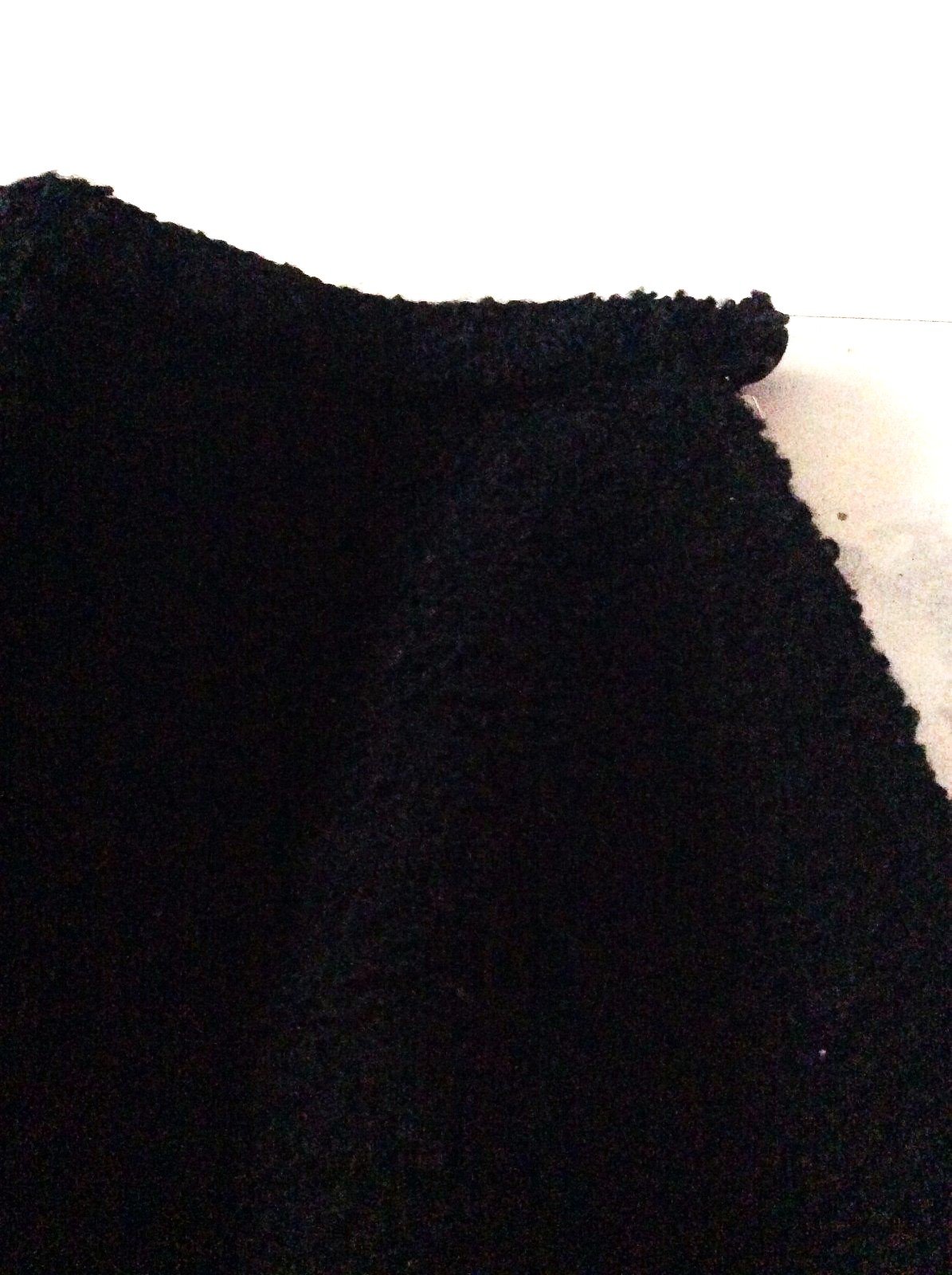 hrubý uzlík,podšitá,veľmi teplá,materiál ako uzlíčkové kabáty,sýtočierna,vzadu rozporok,super teplá a výborne vyzerá ku kratkym bundám a hrubým pančuškám...