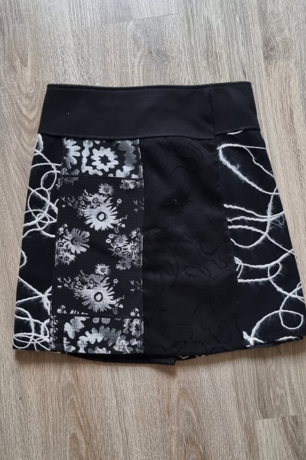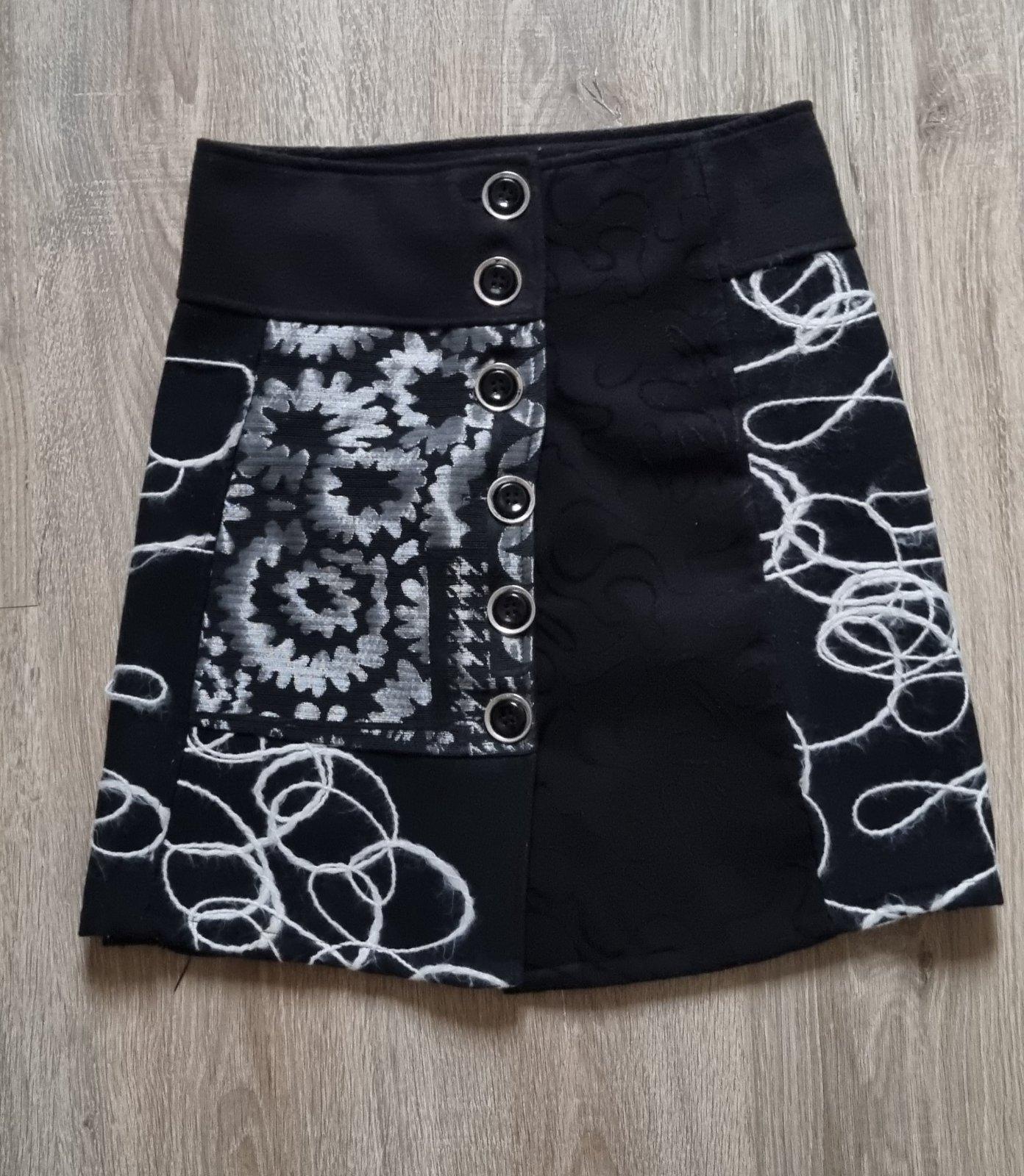 Stále pekná sukňa, teplá, s podšívkou. Dĺžka 47 cm, pás 2x 37,5 cm. Zapínanie na gombíky.
