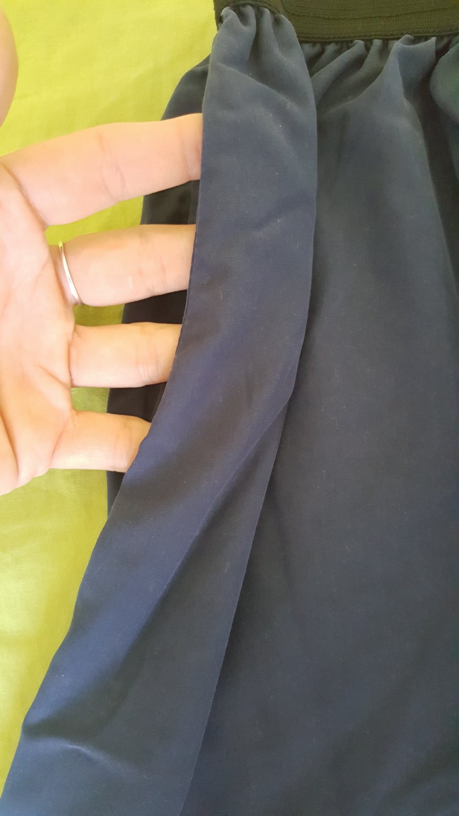 bez chyby, vzdusna prijemna na leto, pas na prijemnu gumu takze sadne aj na M, pas v klude je 34 cm, celkova dlzka sukne je 79 cm.