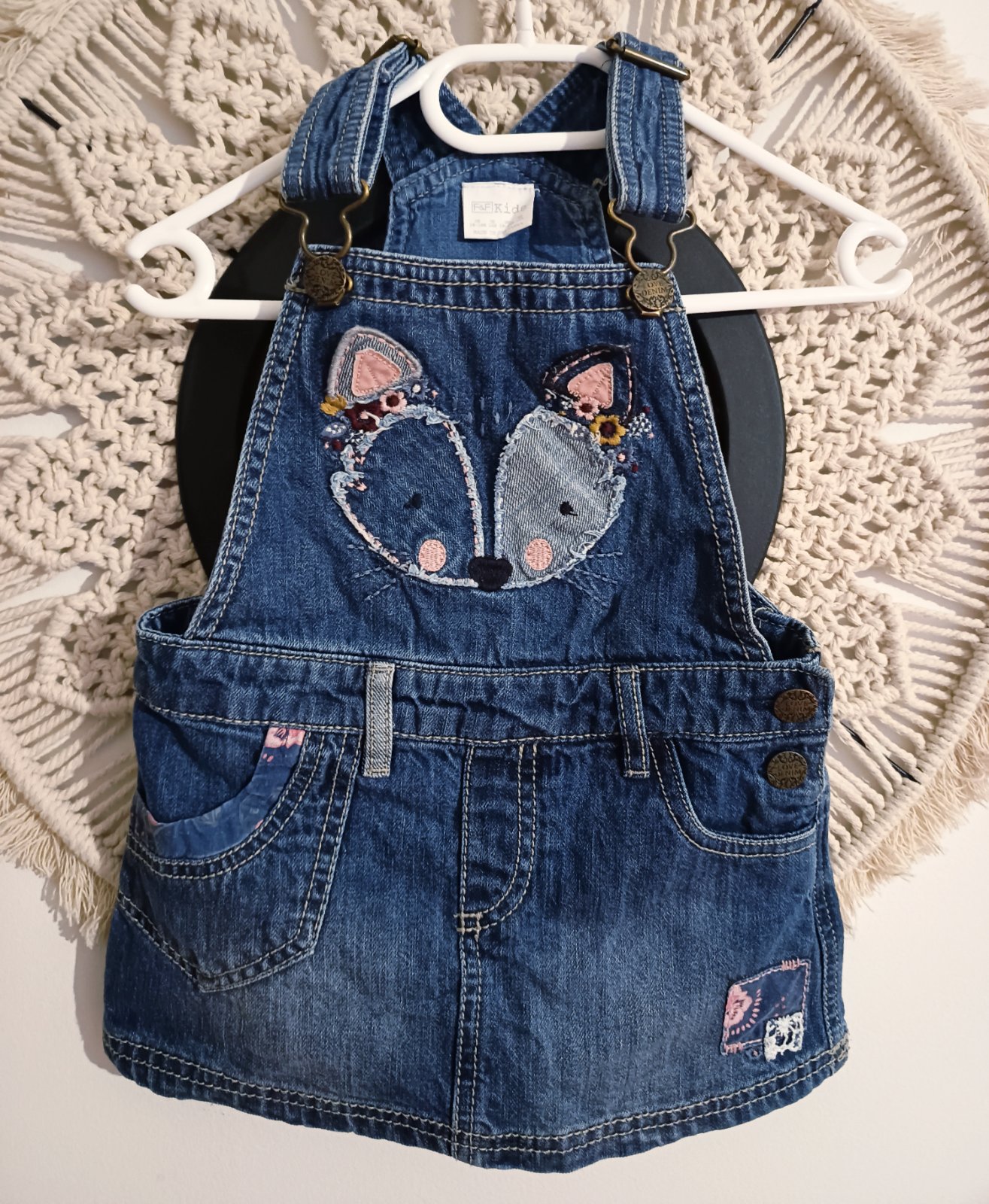 Rifľové šatky s obrázkami. Dajú sa nosiť v lete, ale s tričkom a pančuškami aj na jar/jeseň. Uvedená je veľkosť 3T, ale sú trošku menšie - sedia na veľkosť 92/98 (1,5 - 3 roky). Traky sú nastaviteľ...
