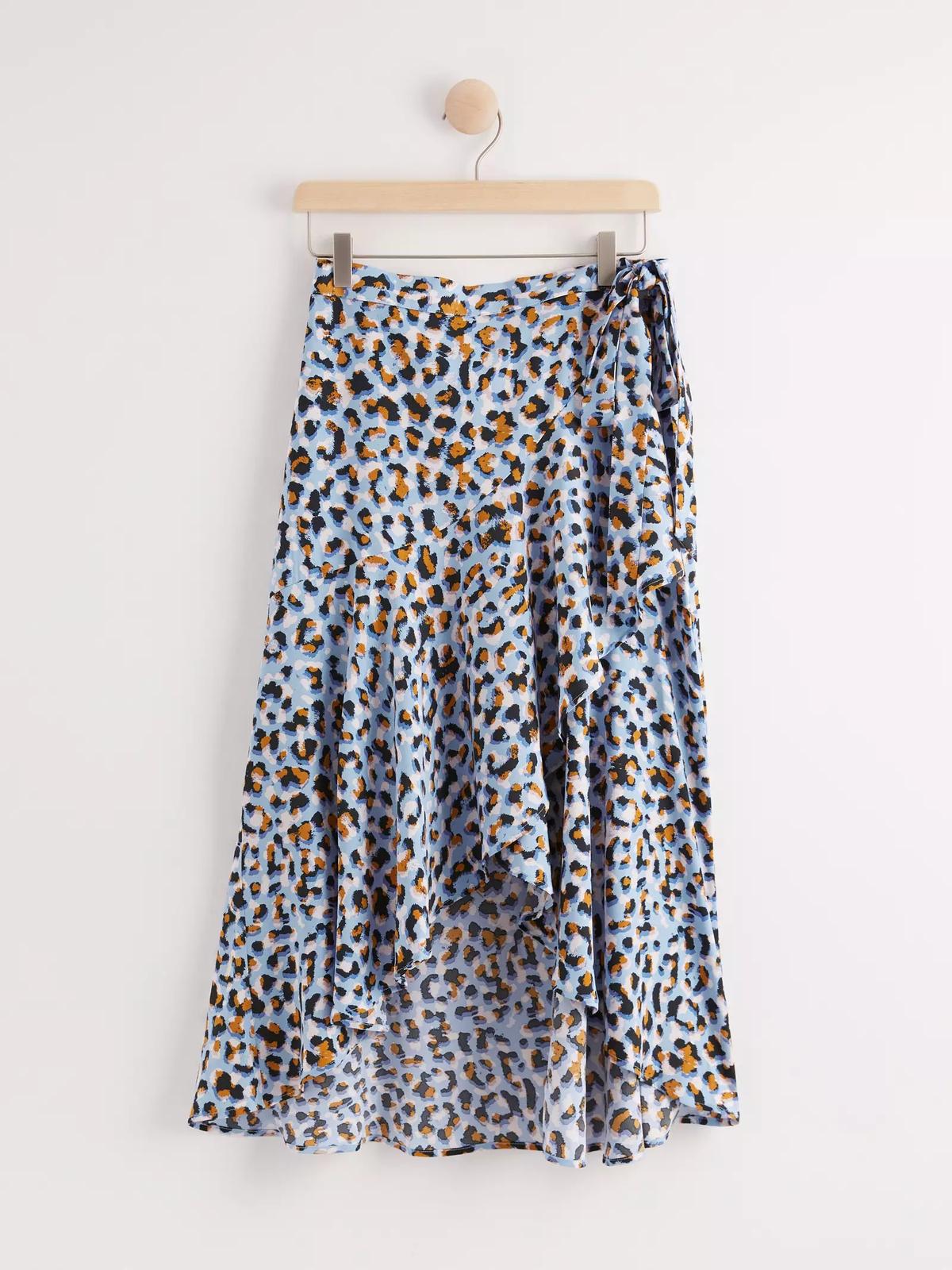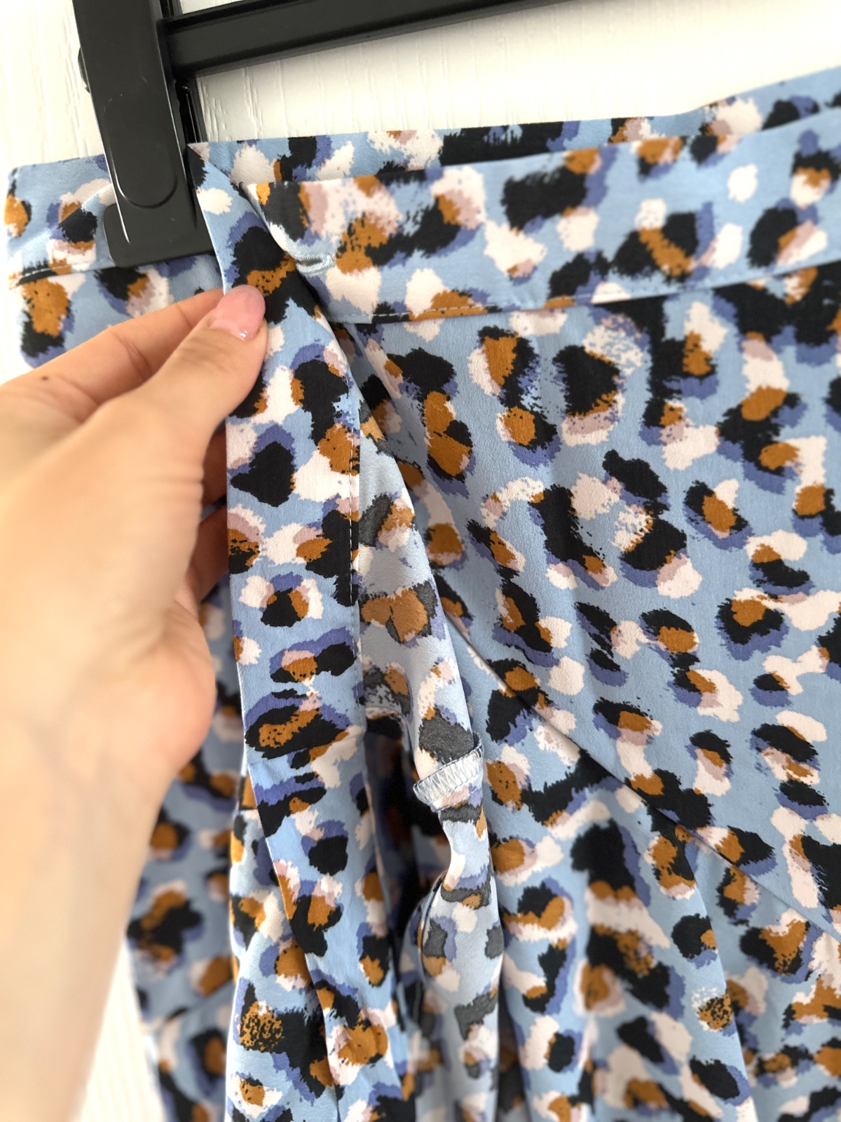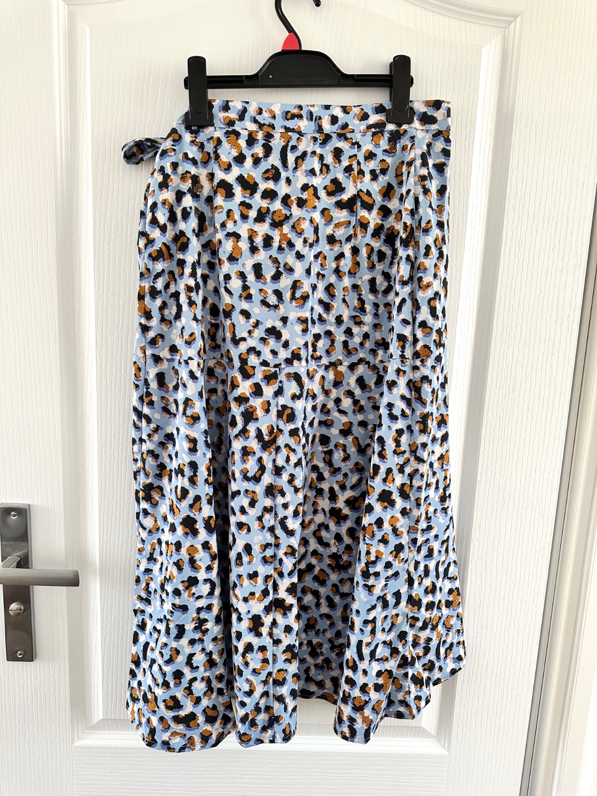 Midi zavinovacia sukňa s krásnym leopardím vzorom na modrom podklade. Sukňa je nová s visačkami, kúpená v predajni Lindex. Veľkosť na visačke je XS, ale je zaviazaná, takže sa dá upraviť a bude vhodná od veľkosti XS do M. Má midi dĺžku, široký volánik, ktorý krásne splýva. Je to perfektná sukňa na mnoho príležitostí. Dá sa nosiť športovo alebo elegantne. Ideálna na svadbu, krst alebo záhradnú párty.