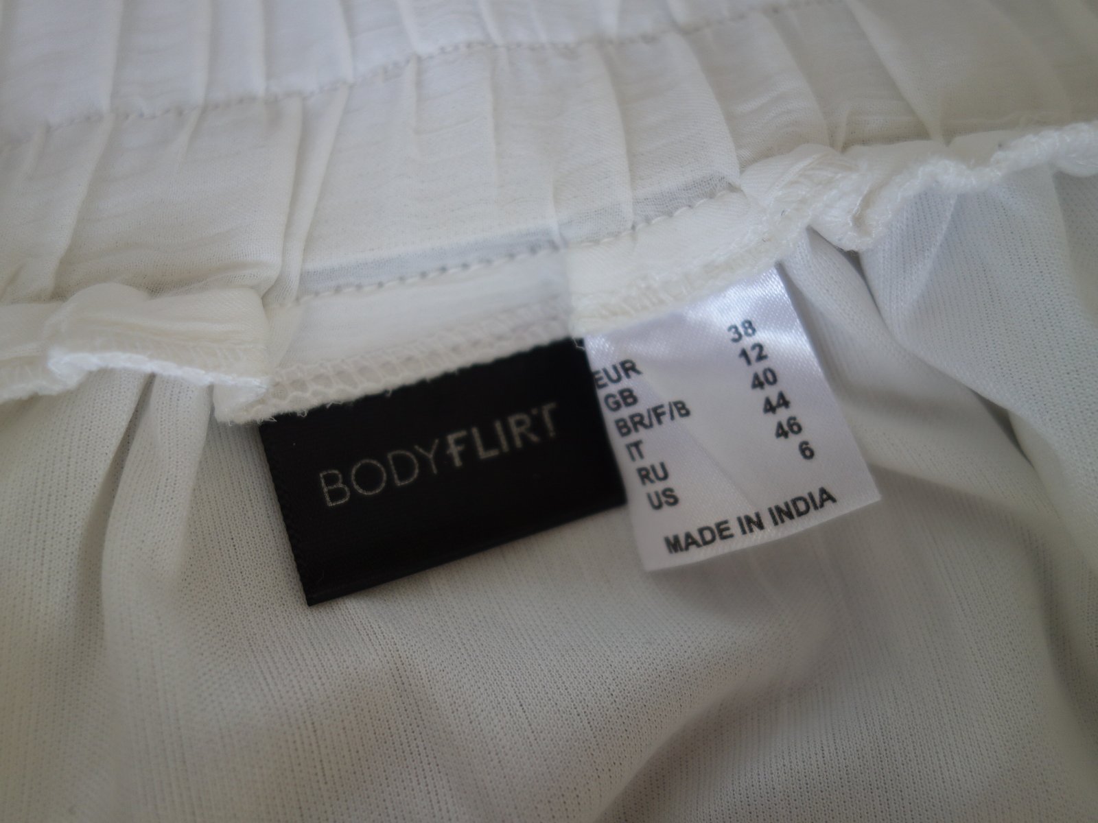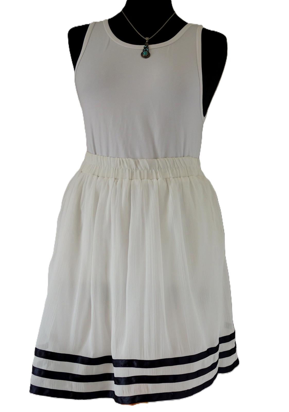 Biela podšitá sukňa Bodyflirt - dole 3 čierne prúžky. veľ.38, rozmery: dĺžka 48cm, pás je na gumu 2x33-43cm.