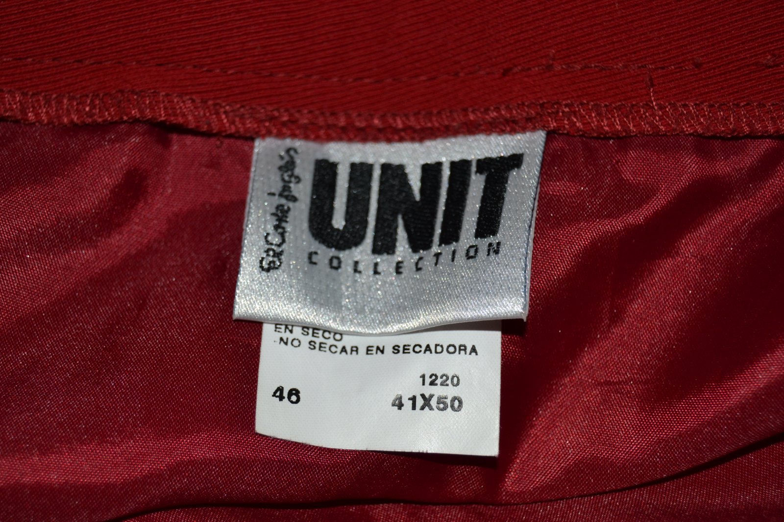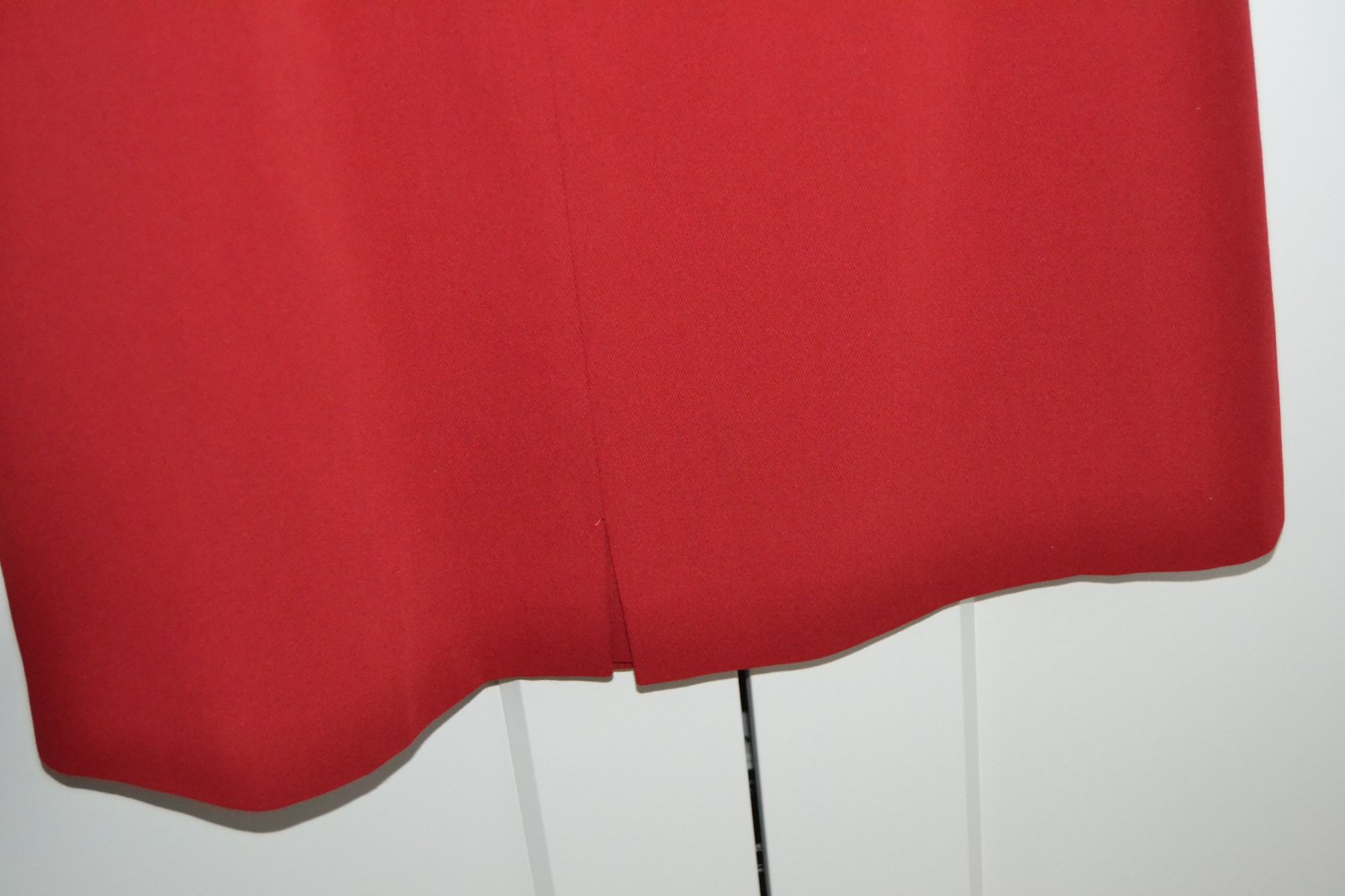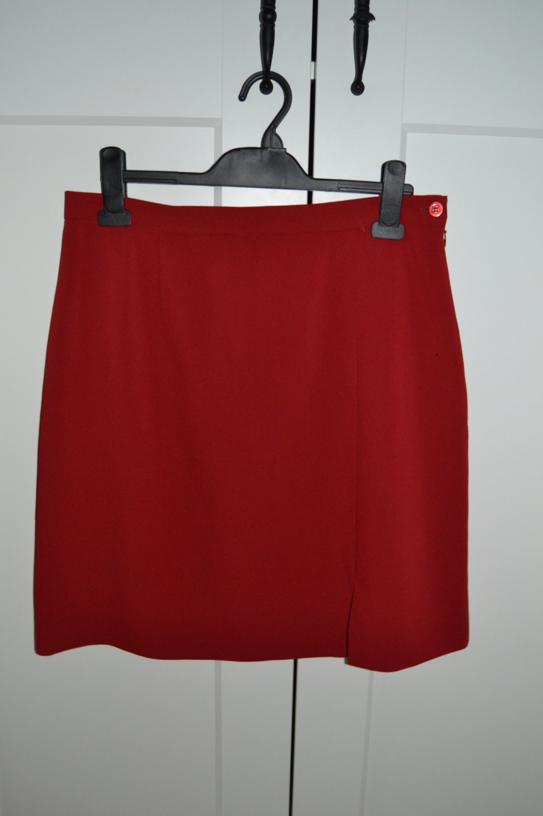 Červená sukňa so spodnicou, zapínanie na boku, rozparok na ľavej nohe vpredu, veľkosť 46, obvod pás 80 cm, dĺžka 53 cm, rozparok 10 cm. TOP STav