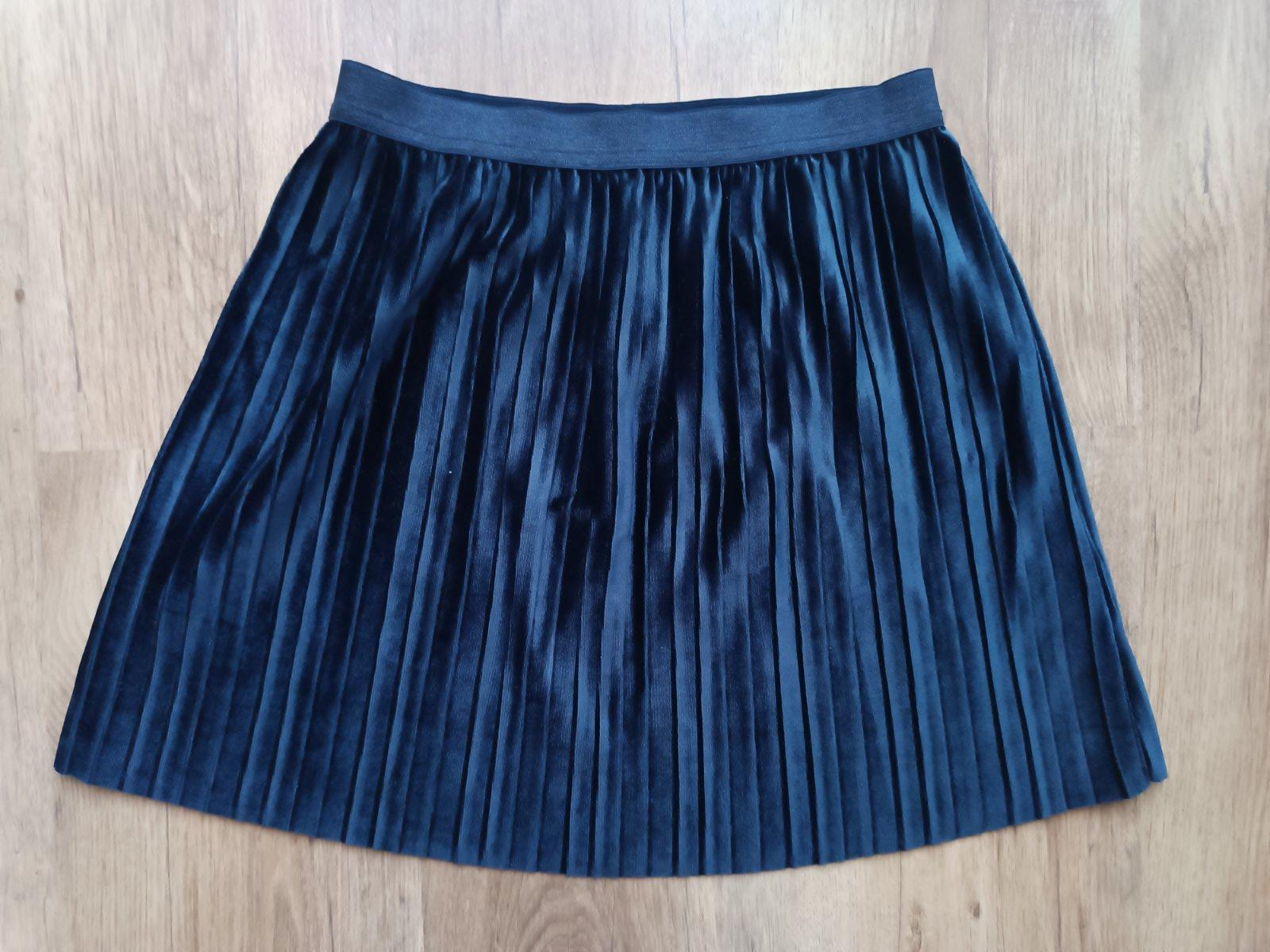 Predám použitú krásnu zamatovú plisovú sukňu v pase s trblietkami veľ.146/152, zn. Tchibo, rozmery - pás 31 cm, d 40 cm.
