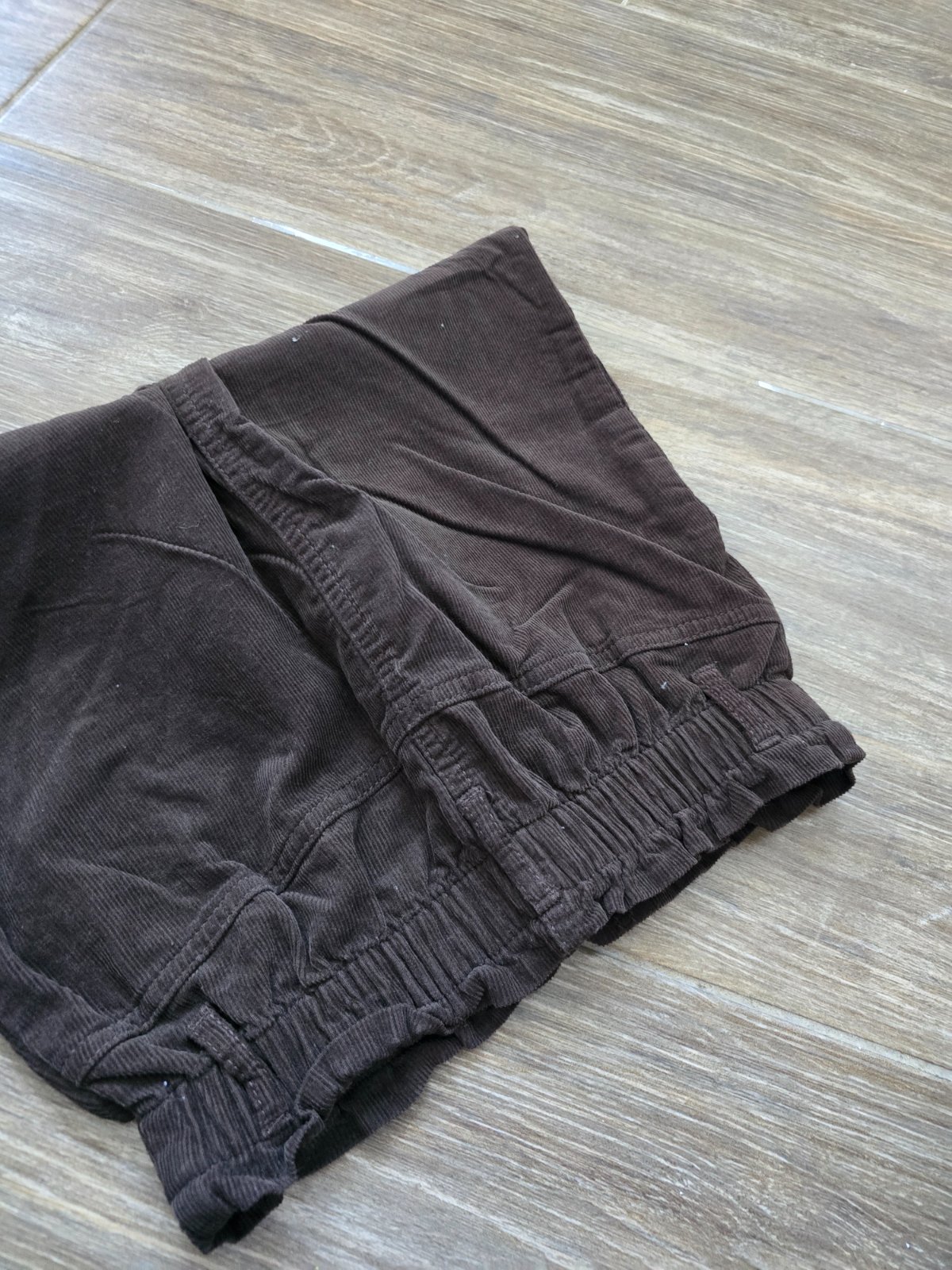 Material je nieco ako riflovina,velmi pekna. pas sa da stiahnut gumickou. pas 33 cm,dlzka cca 36 cm. hnedo-fialova. vhodne na prechodne obdobie.