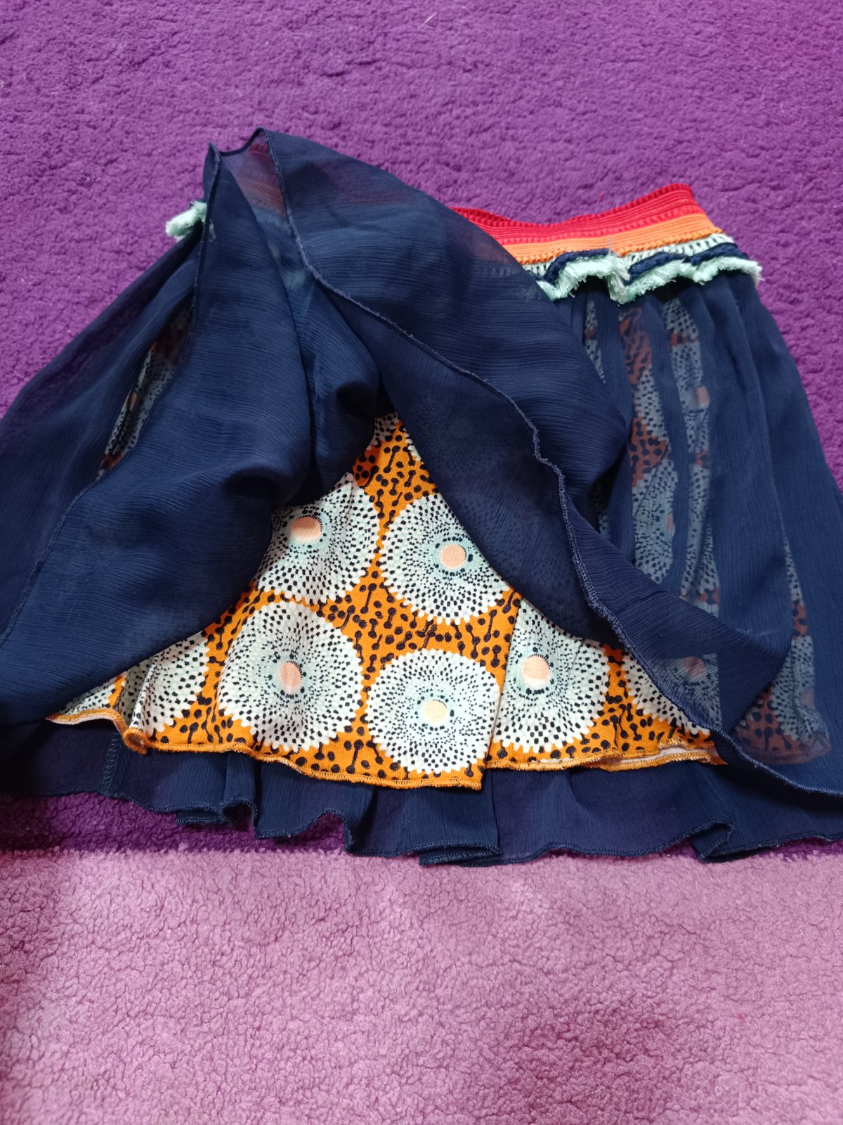 Riflová suknička s bavlnenými gaťkami, zapínanie na pevný kovový zips a nit, vpredu dve funkčné vrecká, vzadu v páse všitá guma - riasenie. Vo výbornom nosenom stave, bez chybičky. bočná dĺžka=25cm...