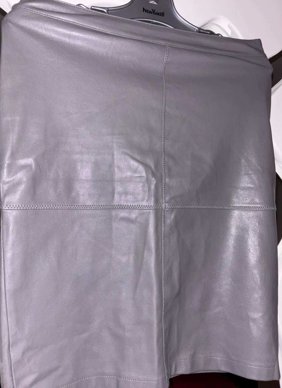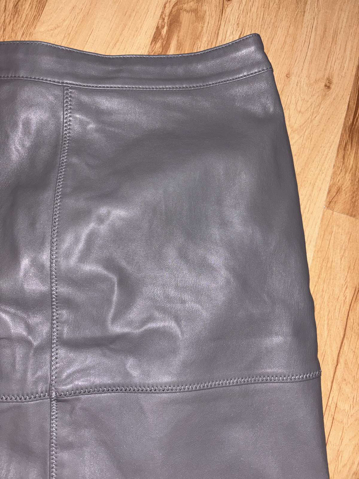 Koženková, pružná, šedá, po natiahnuti je miwrne popraskana, veľkosť S, pás 36 cm, dĺžka 54 cm