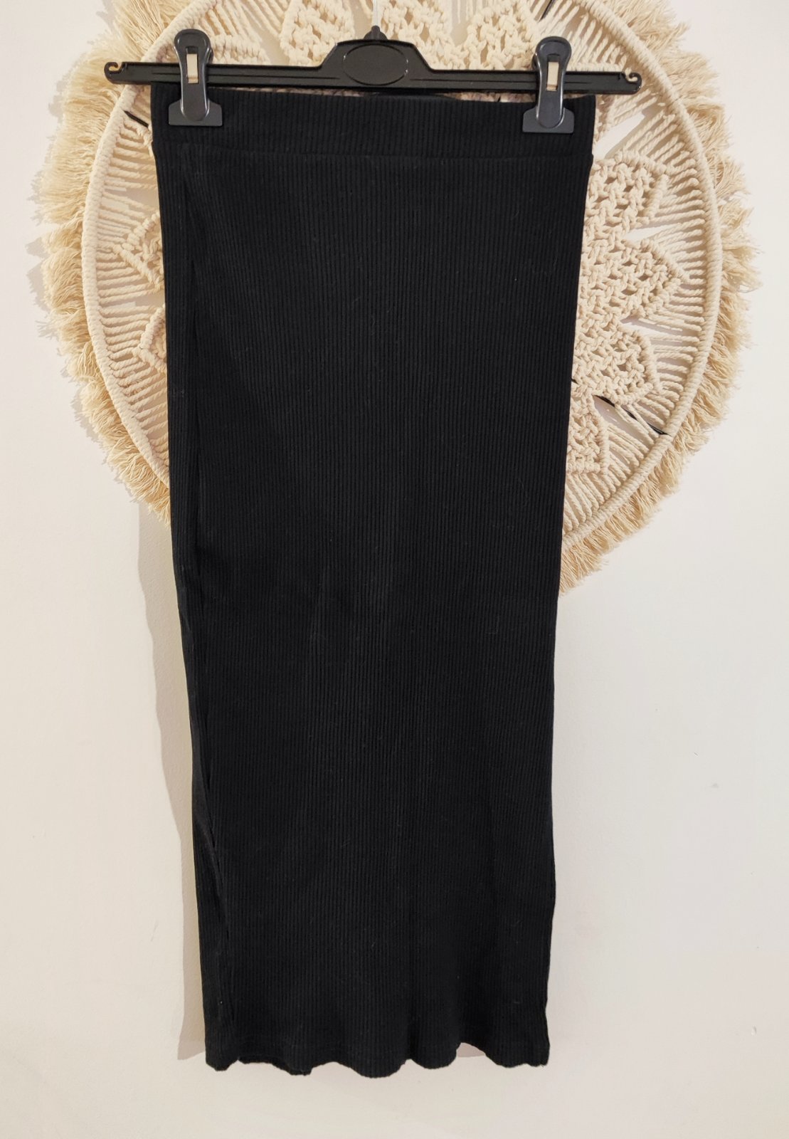 Čierna vrúbkovaná,pružna minisukňa s rázporkom,dĺžka 43cm.Veľmi zachovalá.