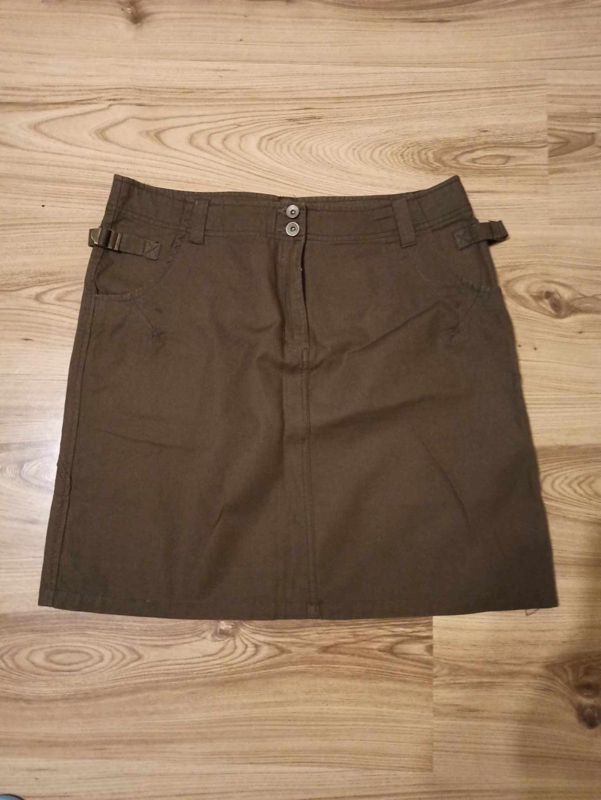 Oblecena len 2-3 krat, Material ,87% polyester, 10% polyamid, 3% elastan bez podsivky, stredne hruba, makky materiál, pekne sadne. Farba /hnedá vzorovana , pás pevny bez gumy, Dĺžka 55 cm , pas si...