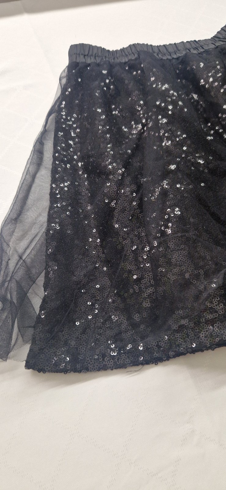 V zachovalom stave pekná sukňa z flitrami a tylom, pás na gumičku