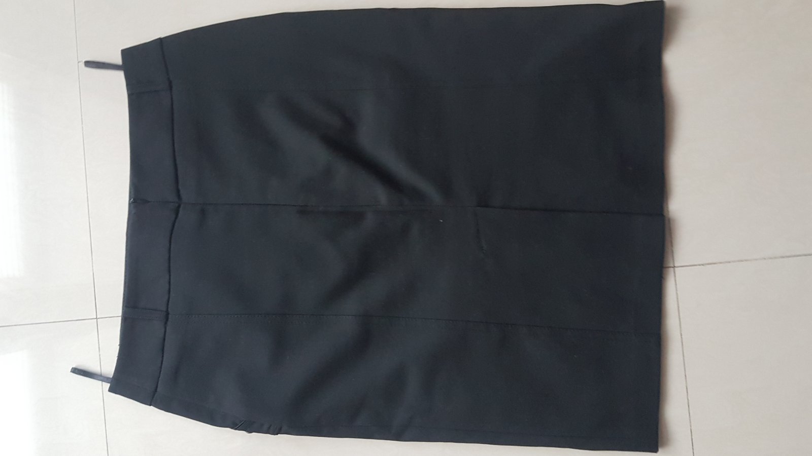 Veľmi elegantná čierna sukňa klasického rovného strihu po kolená s putkami,vzadu zapínaním na zips a rázporkom,po bokoch 3 gombíky ako aplikácia,veľmi kvalitná a podšitá.Pás 37 cm,boky 44 cm a celková dĺžka je 54 cm.Klasikou nepodlieha móde a je vhodná aj na prechodné i teplejšie obdobie.
