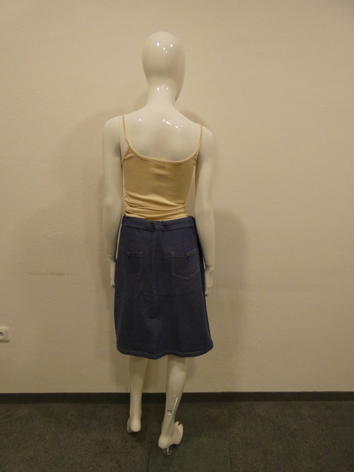 Nosené bez poškodenia alebo žmolkov . Značku je Litex a materiál je 100% bavlna . Rozmery sú bočná dlžka 57 cm , šírka v pase v nenatiahnutom stave je 45 cm x 2 a v natiahnutom stave 55 cm x 2.