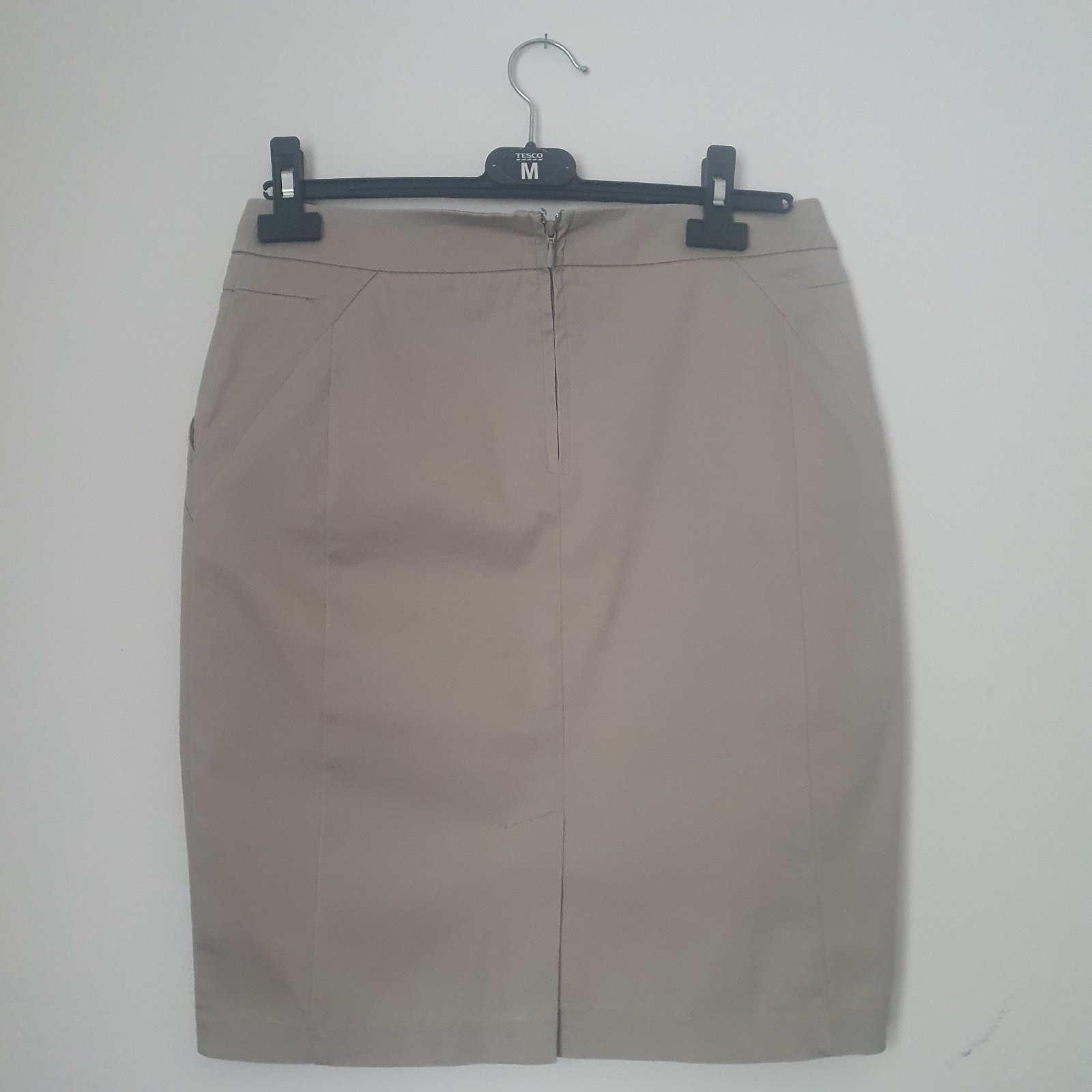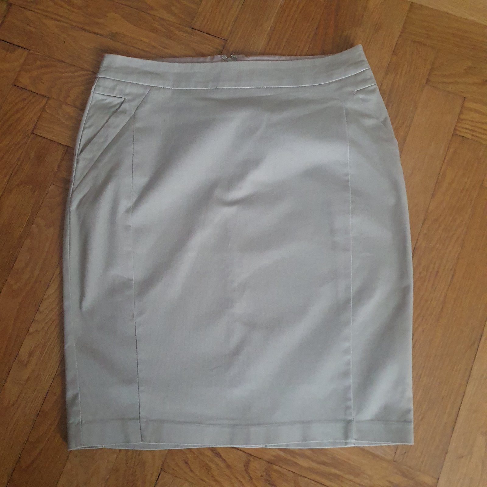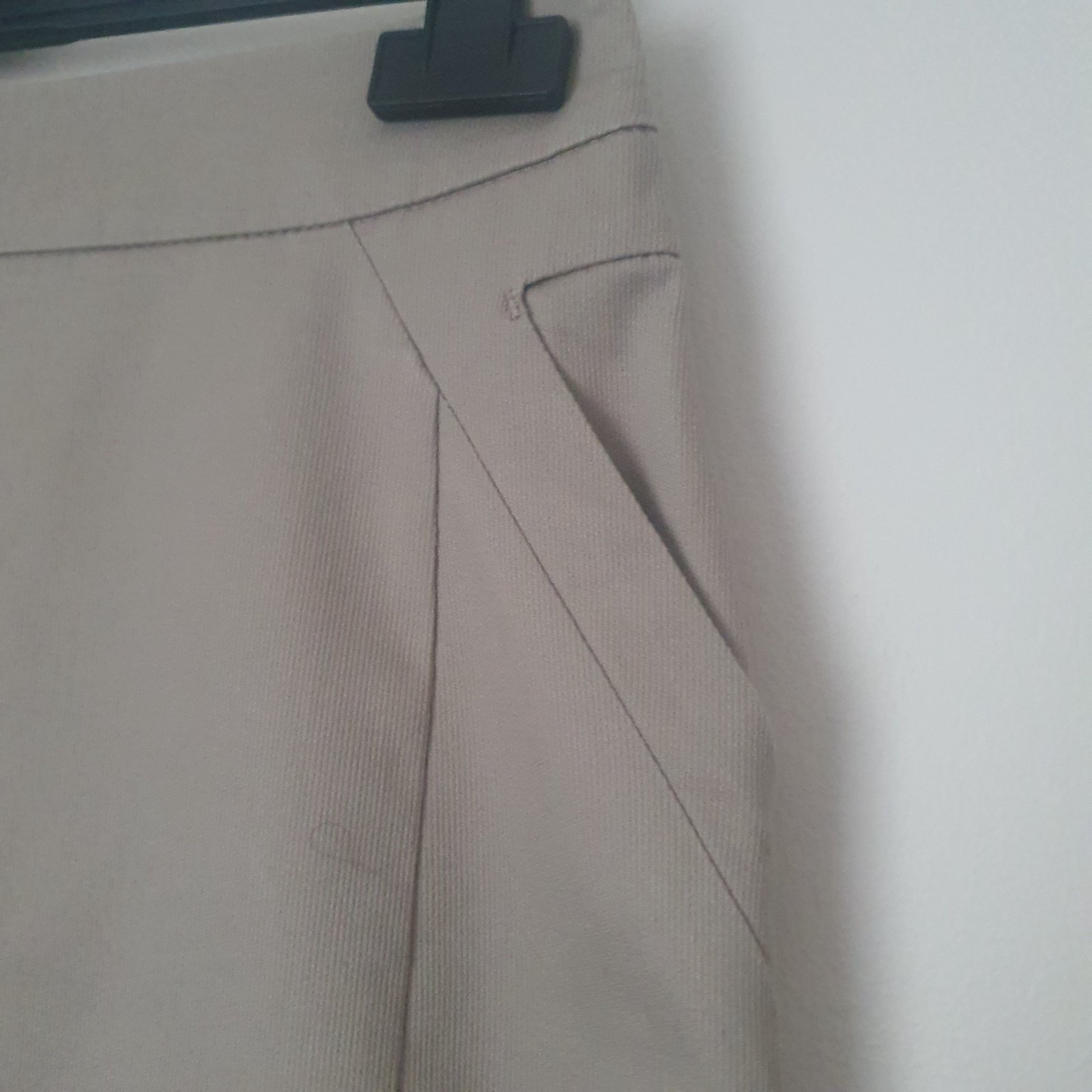 Sukňa je ako nová, 2x nosená. Dĺžka 46cm, šírka 39cm, na boku zips. Vnútro futrované. Farba krémová v kombinácii so sivou. Vhodná do chladnejšieho počasia.