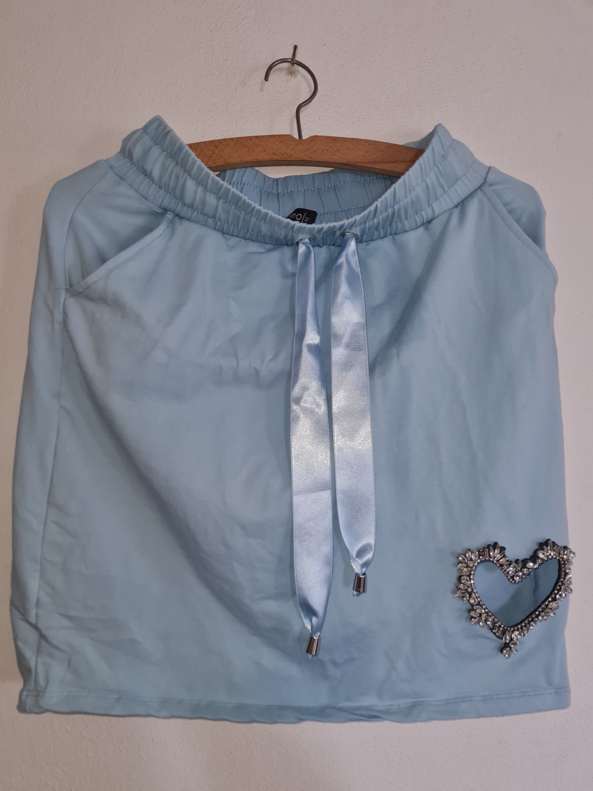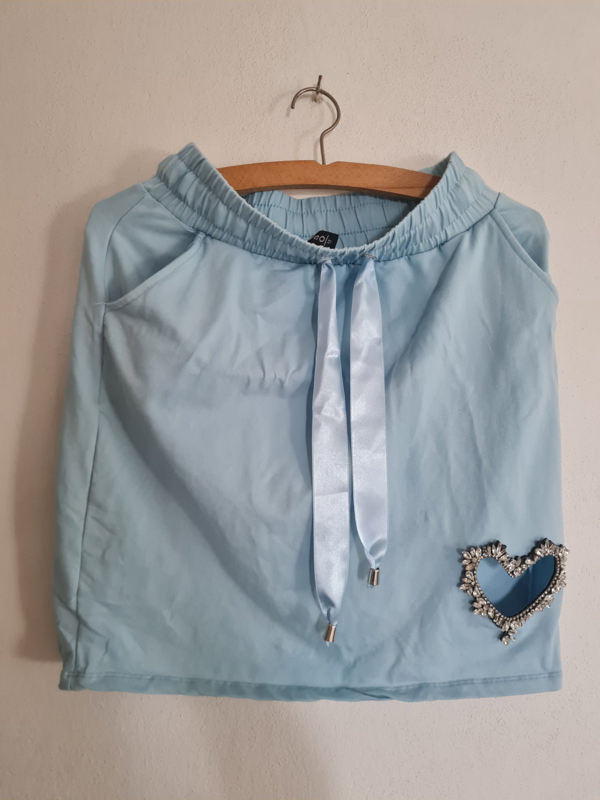 bledomodra sukňa na gumičku s vykamienkovanym srdiečkom, rozmery su na fotkach