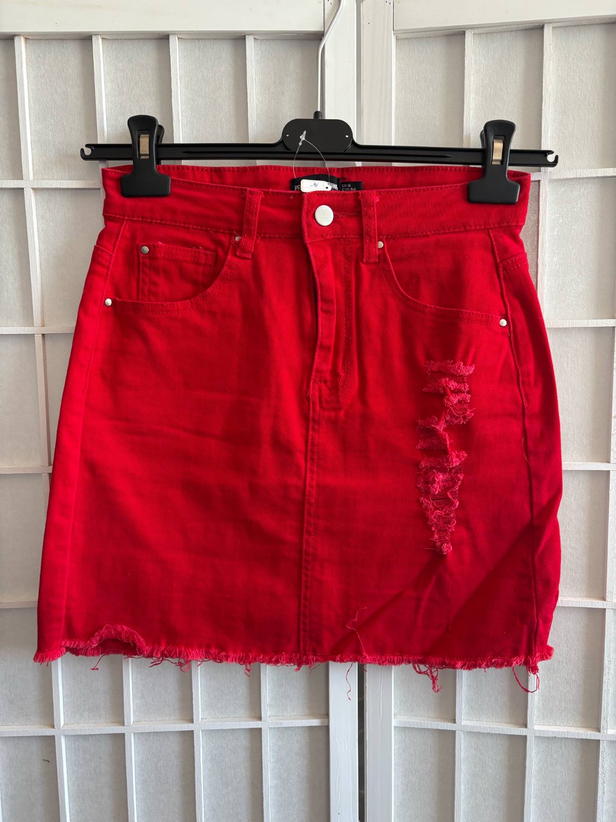 odskusana Velkost uvedena 28, sedi na xs-s sirka pas 41cm x2 Celkova dlzka 36cm Zapinanie na gombiky, da sa cela otvorit ako zavinovacia sukna Cervena s malymi bielymi bodkami Cena 5.5e+posta