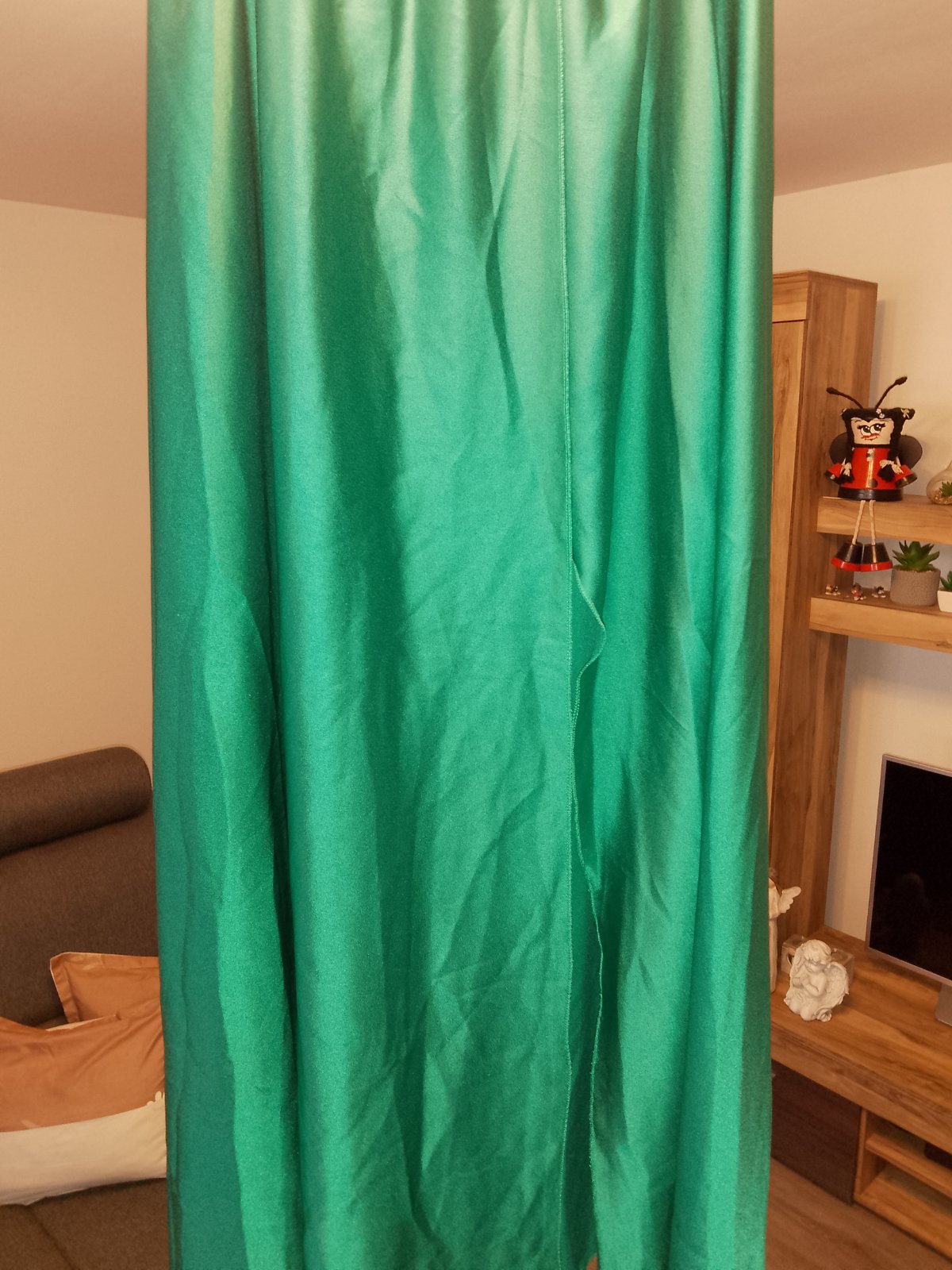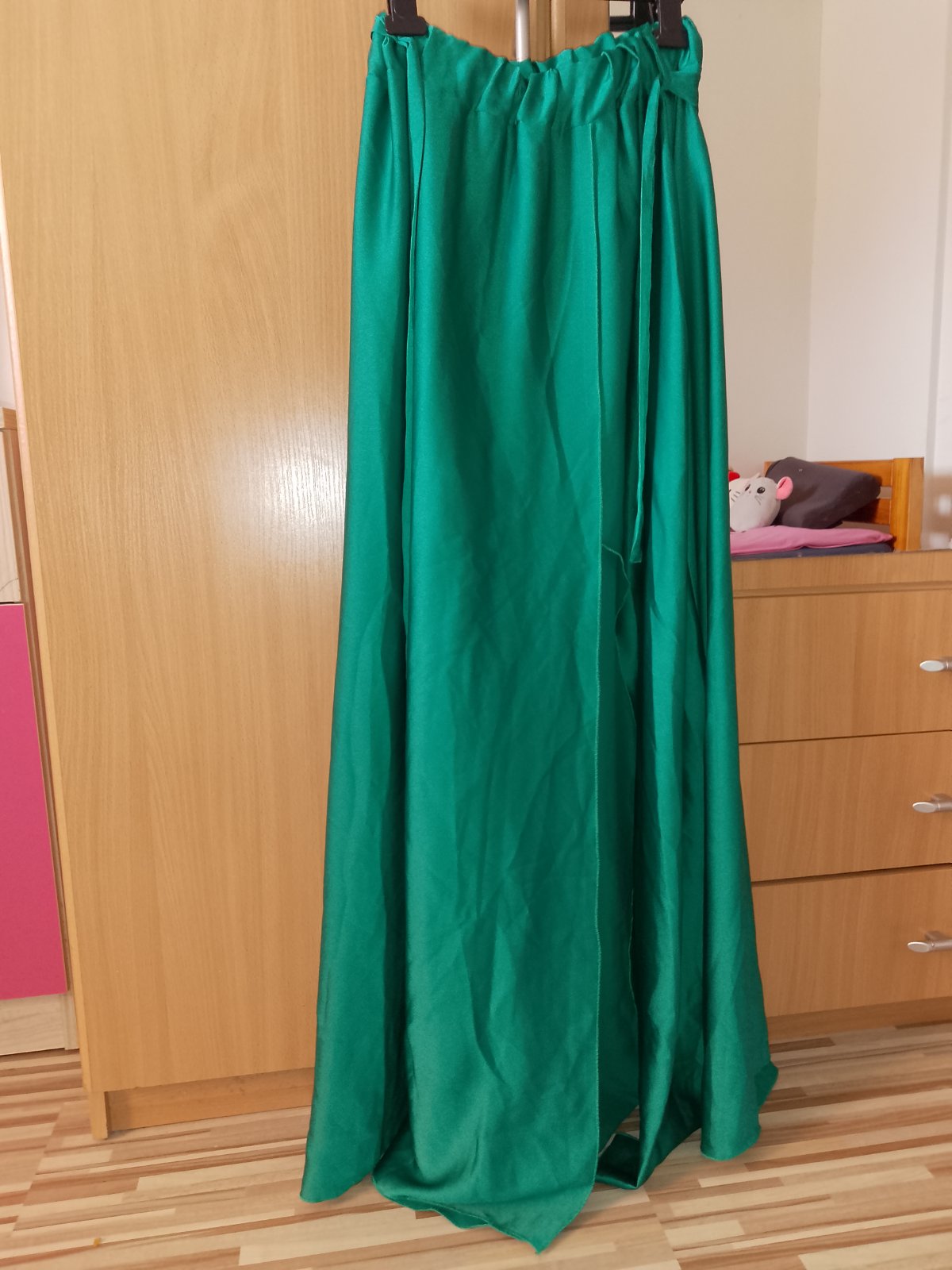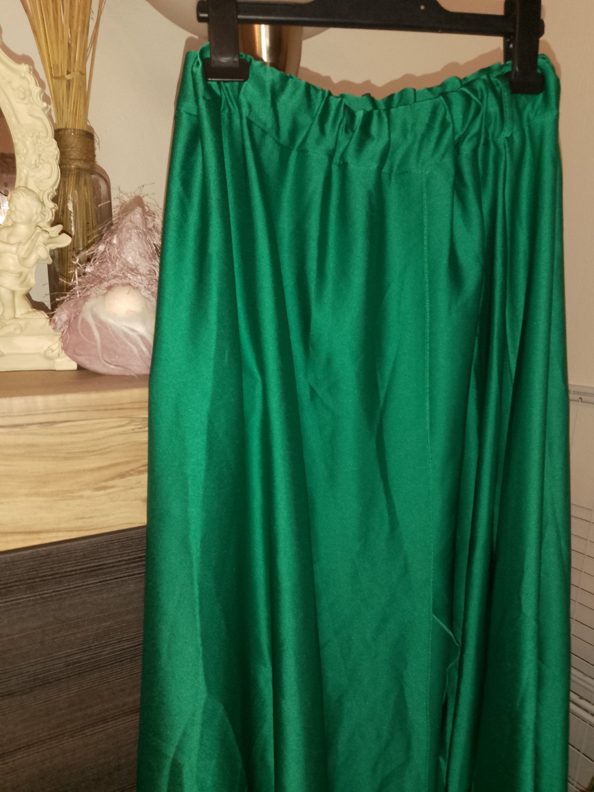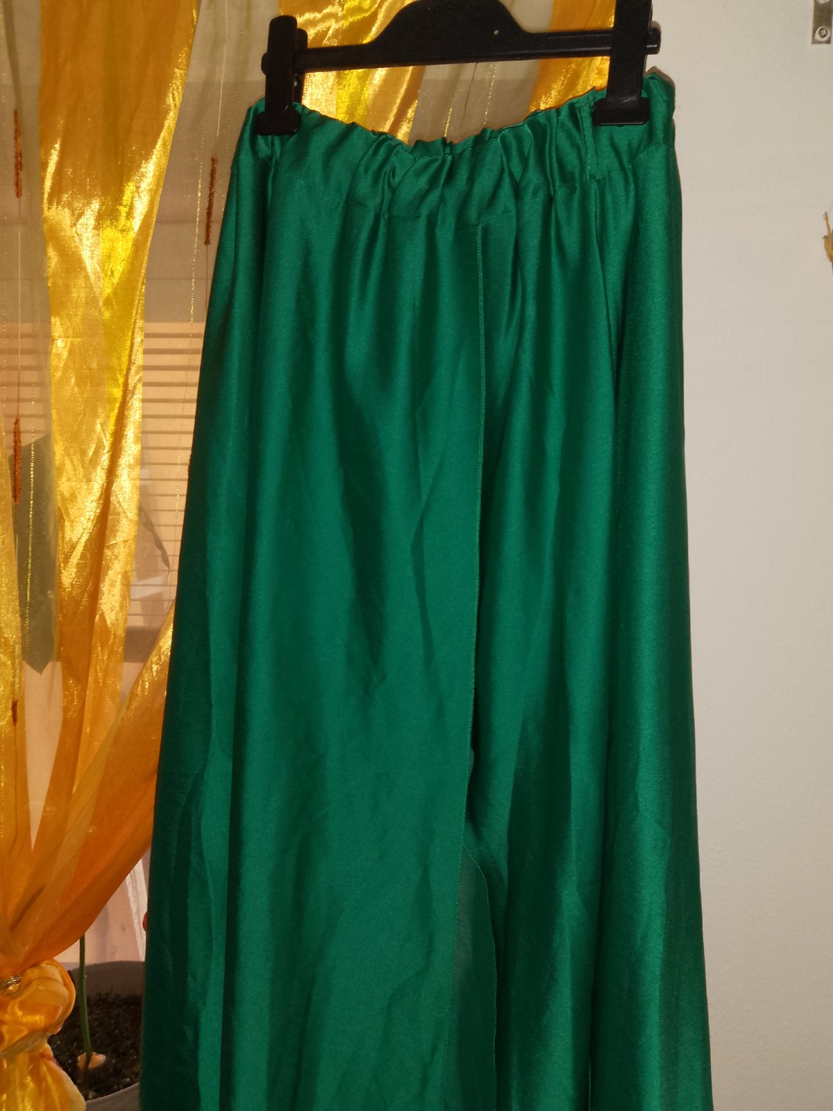 Predám novú satenovu sukňu mne je veľká .sukňa je aj s opaskom .Sukňa má rozporom.skor na vyššiu postavu.celkova dĺžka 109cm a gumička je 32 Max 45cm