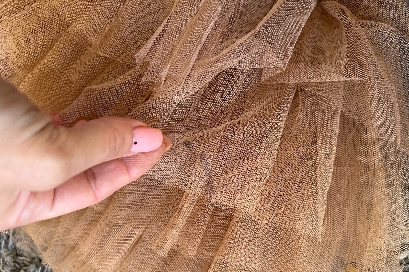 Suknička vo veľkosti 122/128 (čínska 130). Písnutá fixkou - na piatej fotke to trochu vidiet.