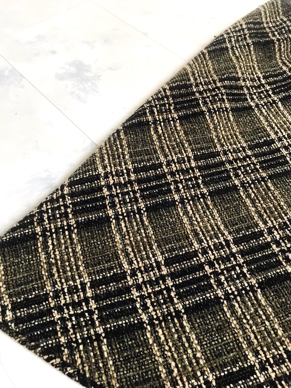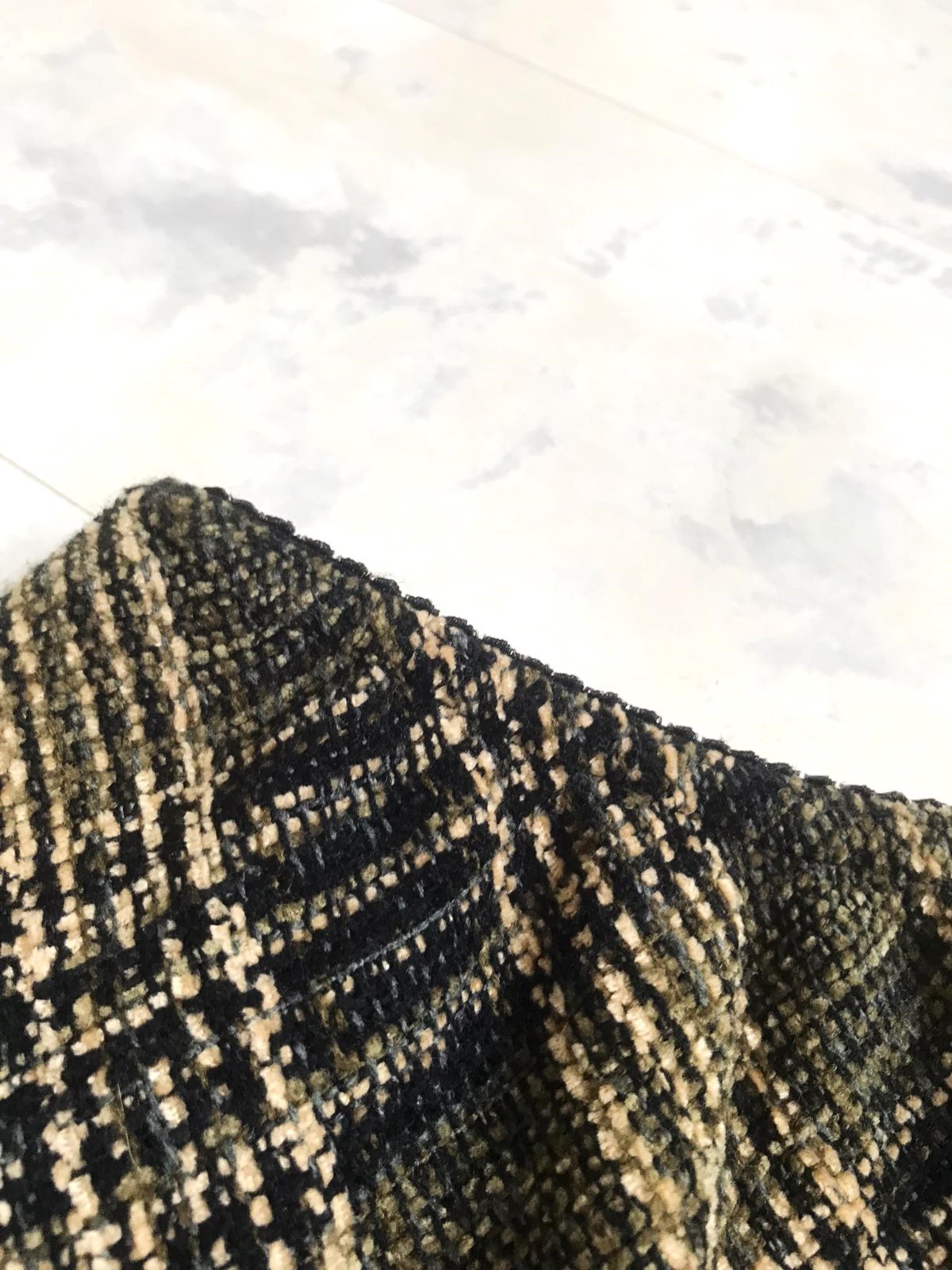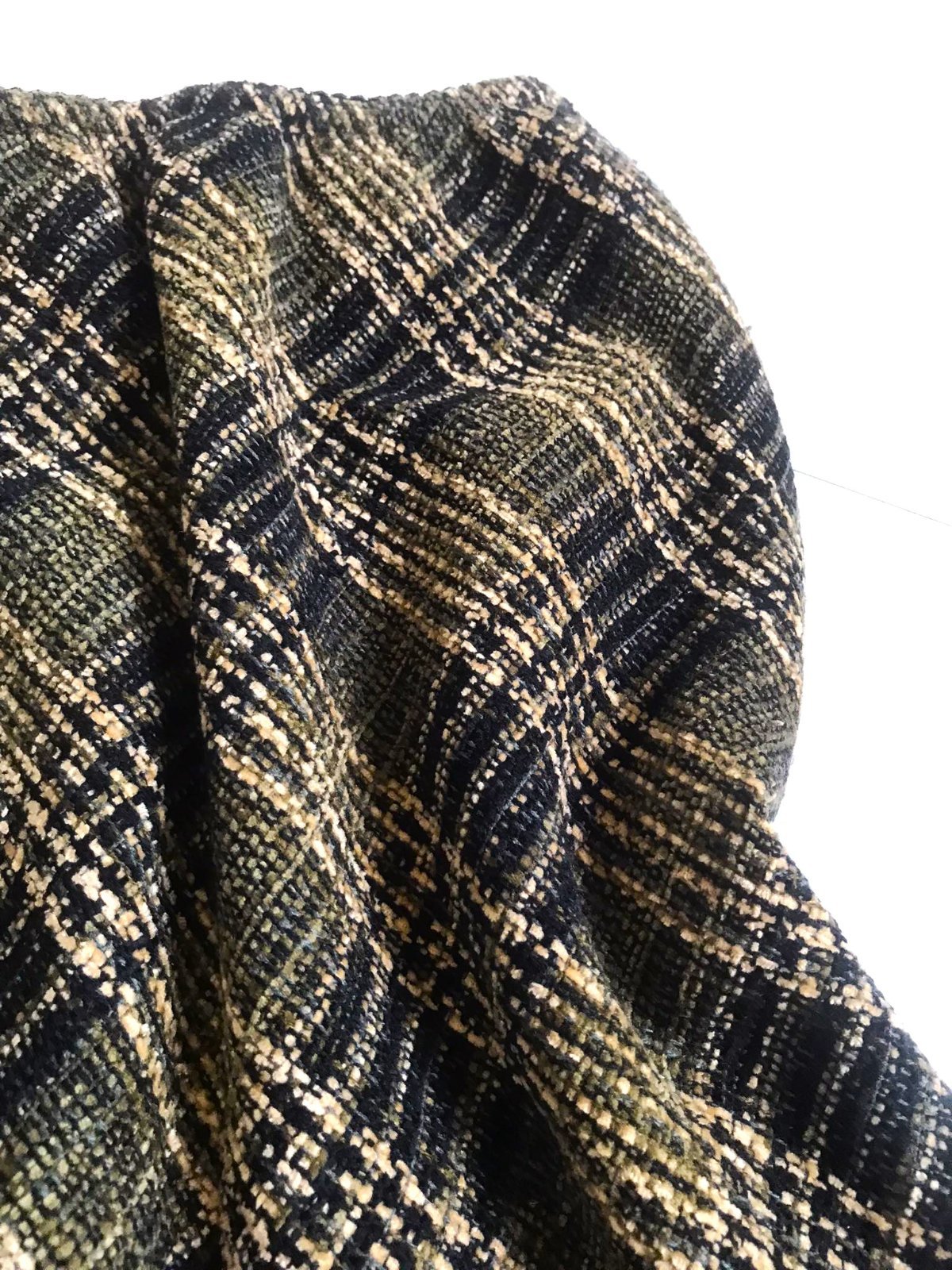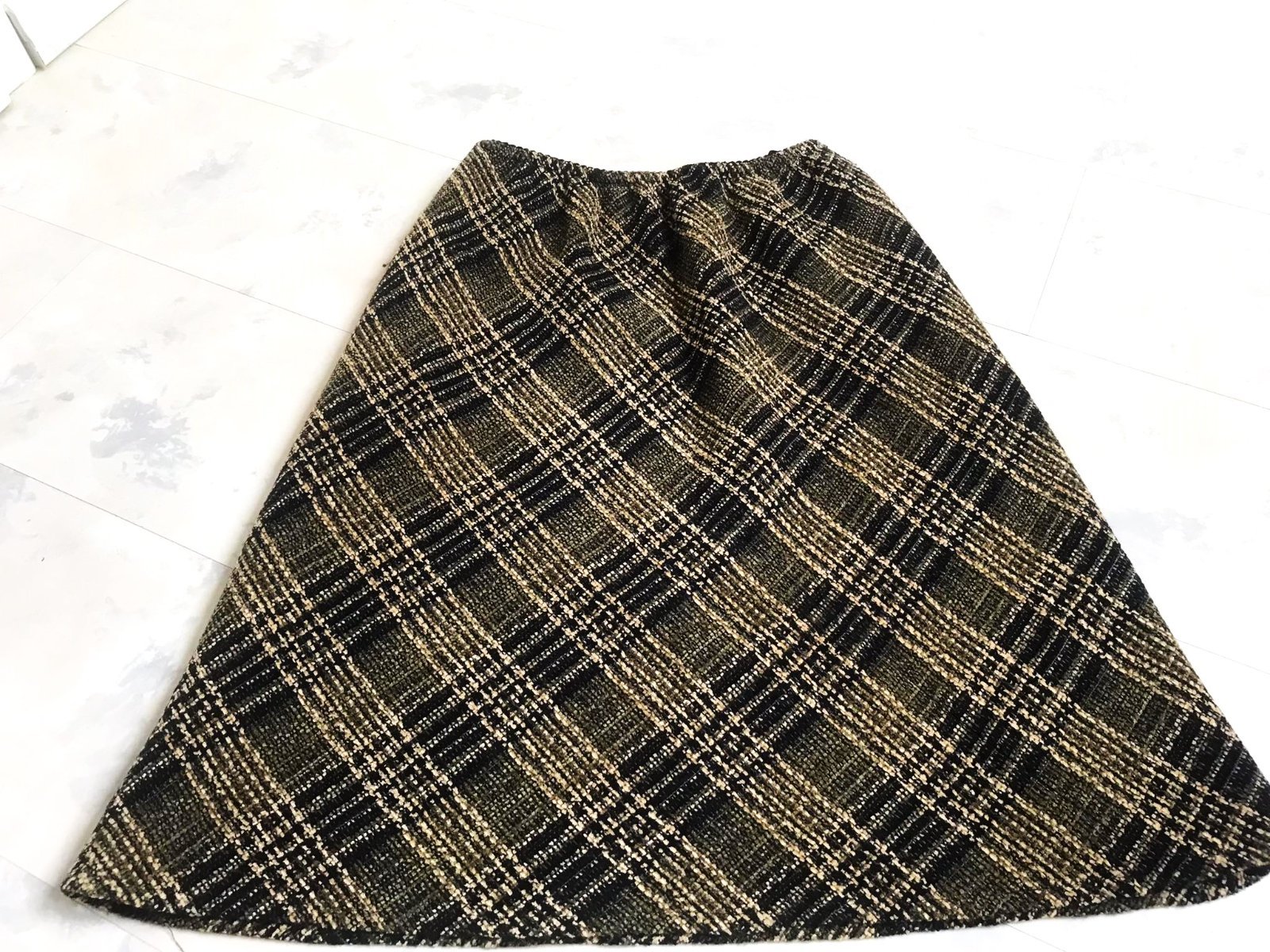 krásna moderná podšitá károvaná sukňa nad kolená z tvídu s charakteristickým vzorom v čiernych, žltých (horčicových) a hnedých odtieňoch,kvalitný materiál - tkané buklé s naznačeným jemným uzlíčkom,v páse jemná gumička,je jemne do áčka,super k hrubým pančuchám,kotníkom, čižmám ale aj k športovým kanadám,
