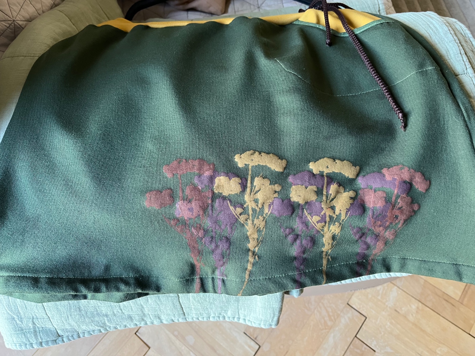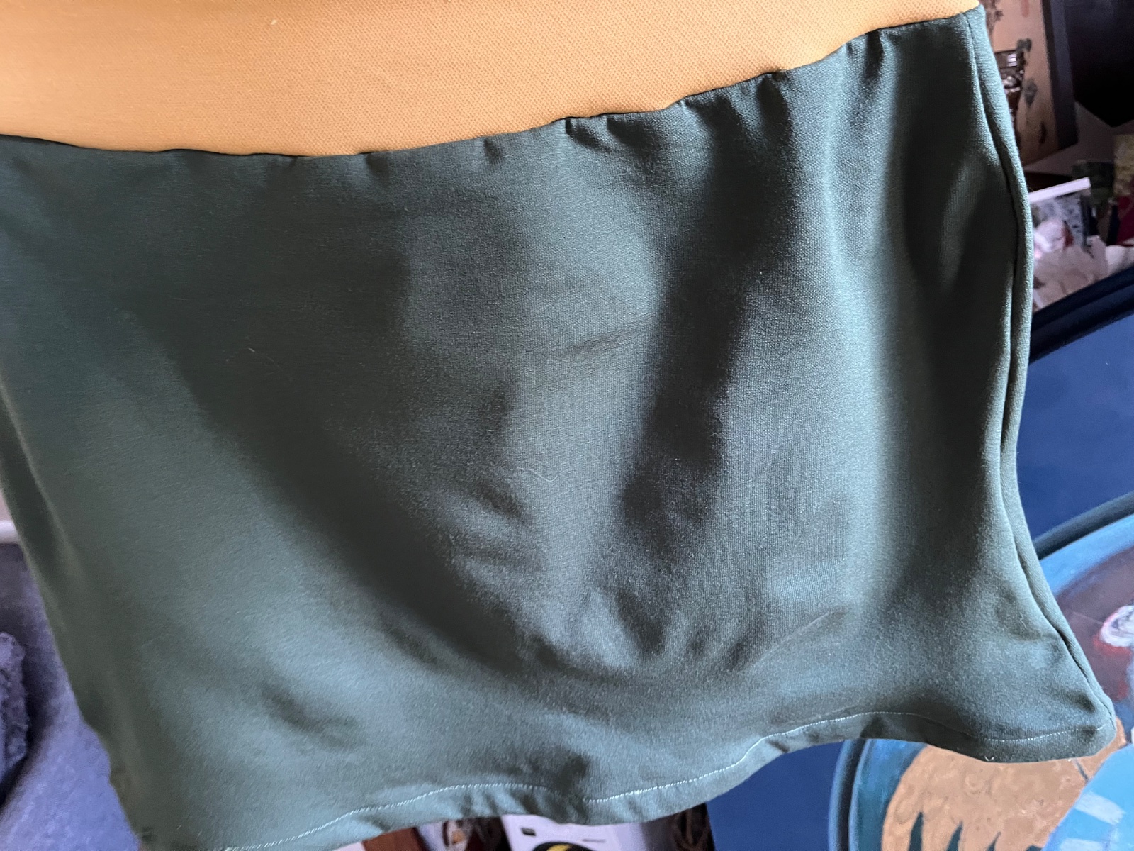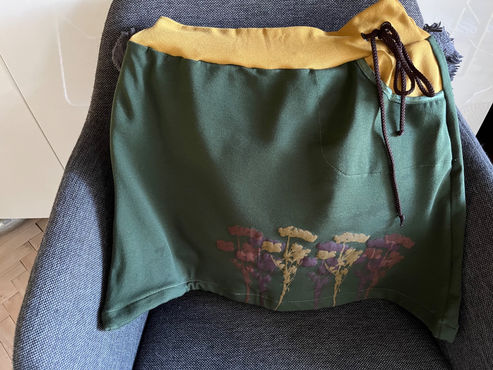Farba je taká flaškovozelená,fliačky sú od parnej žehličky už uschli,takže iba voda,elastická,prispôsobí sa postave,od Ladavy,k cene pošt.