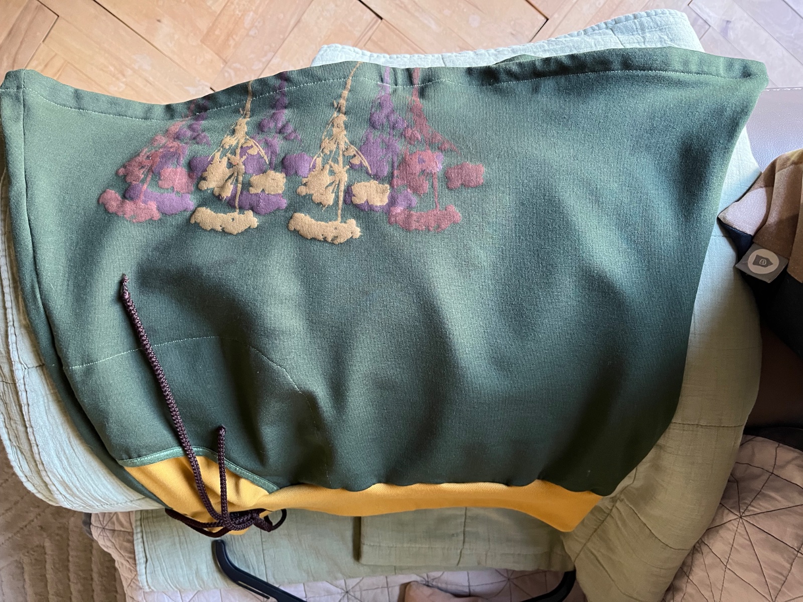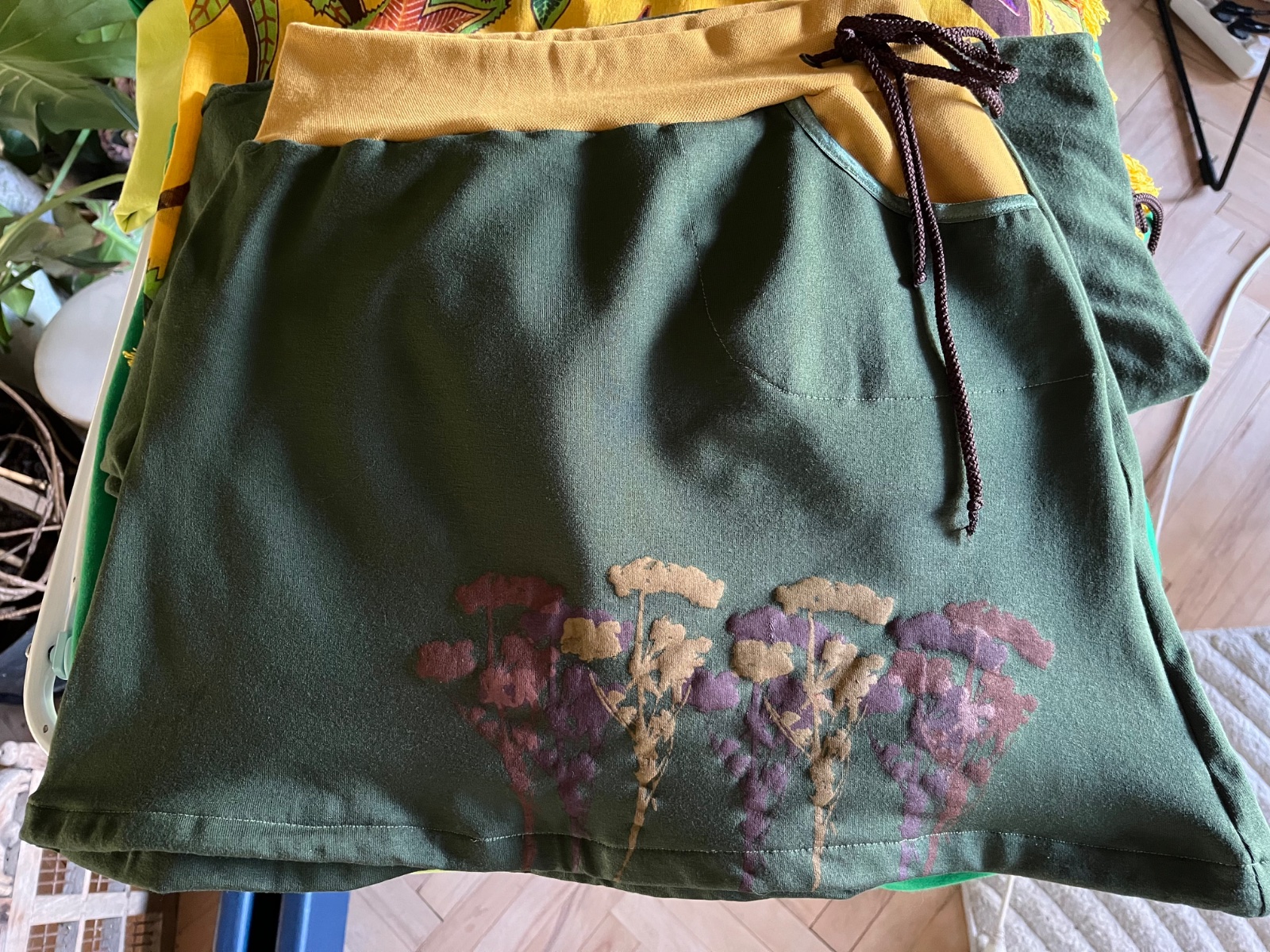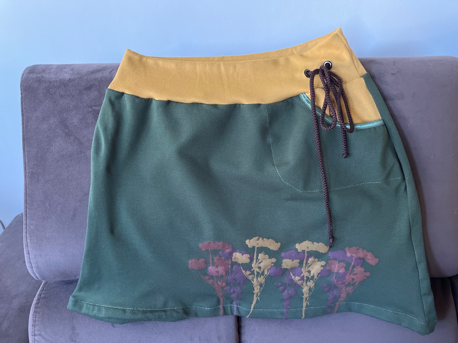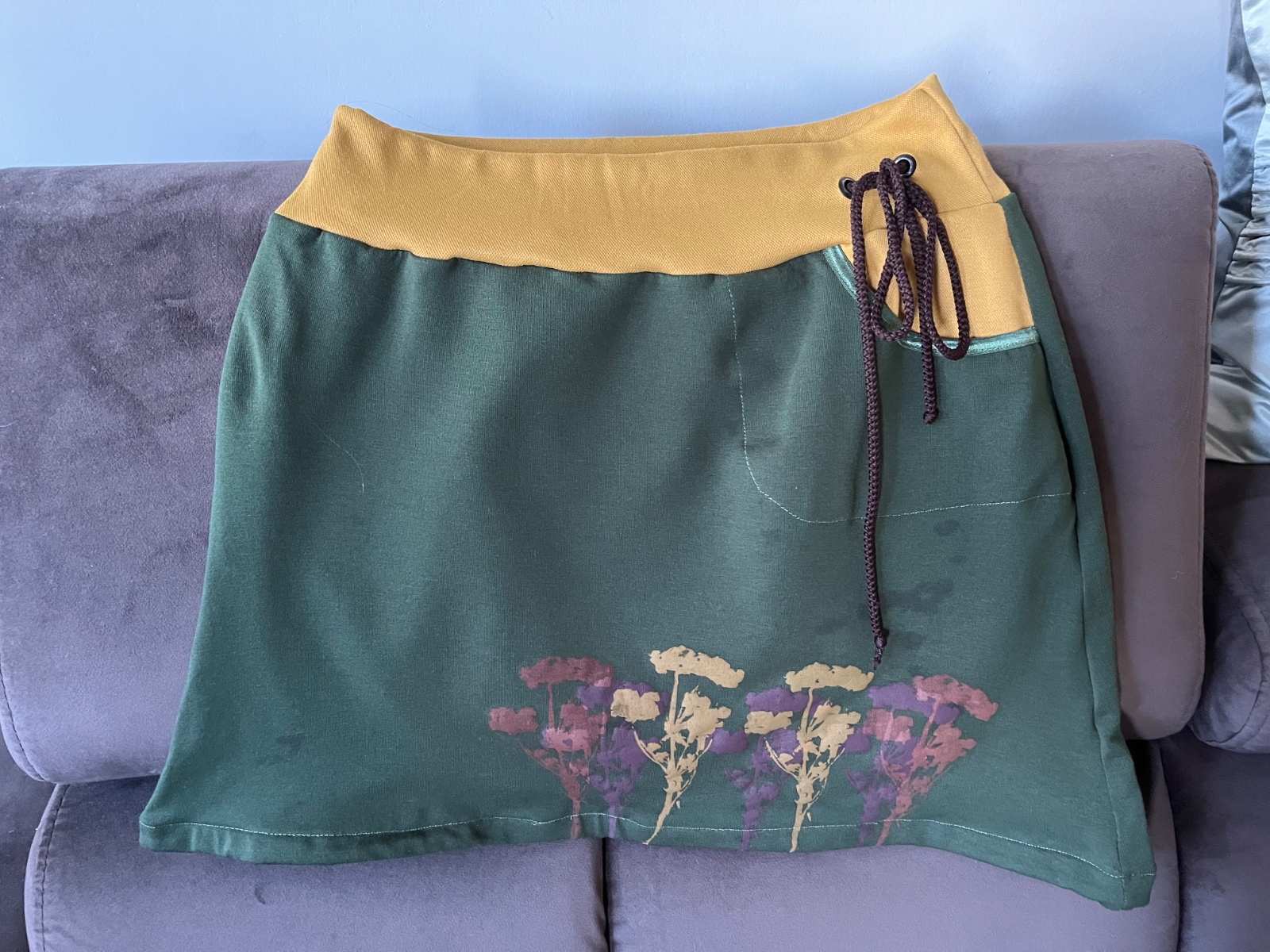 Farba je taká flaškovozelená,fliačky sú od parnej žehličky už uschli,takže iba voda,elastická,prispôsobí sa postave,od Ladavy,k cene pošt.