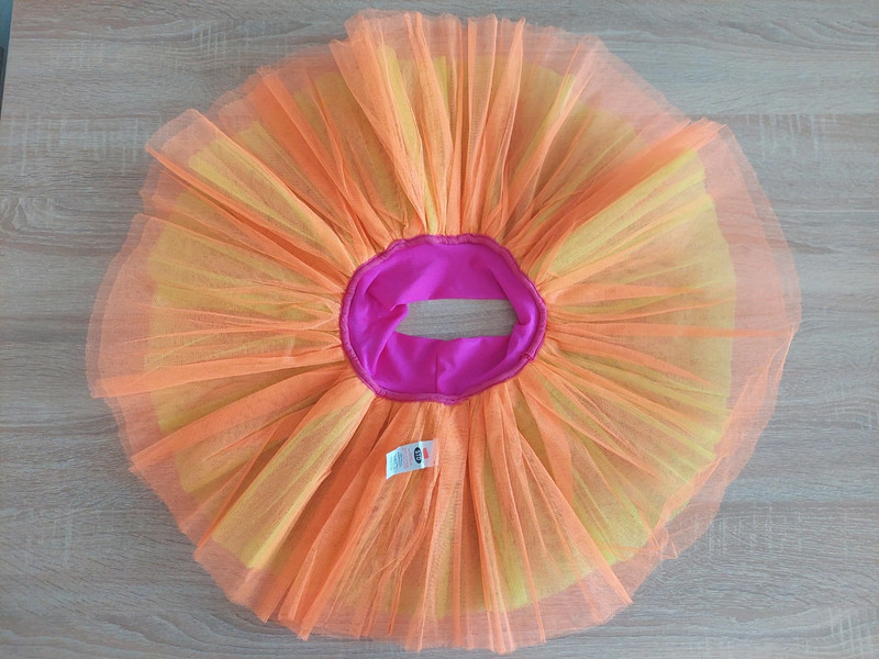 Stav: top stav, bez poškodení a známok nosenia. V páse guma. 6-vrstvová, trojfarebná bohatá tutu sukňa.