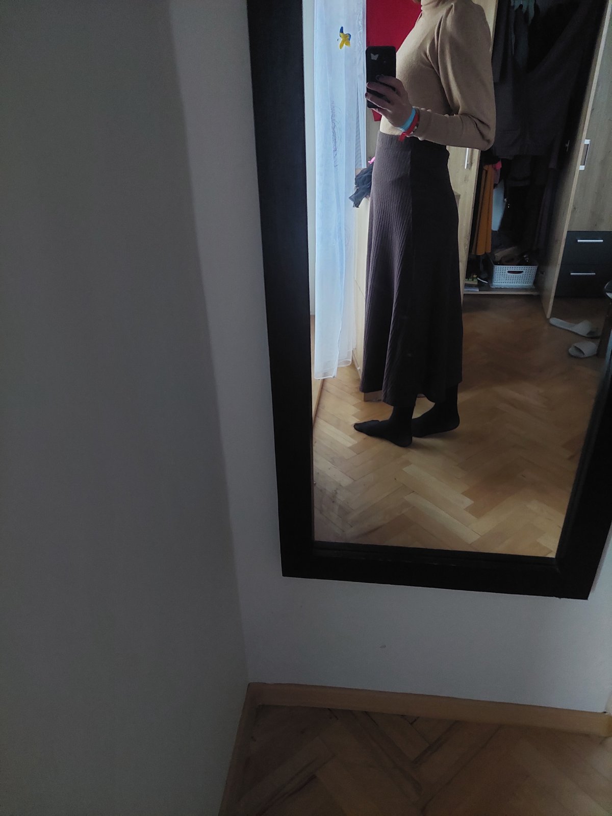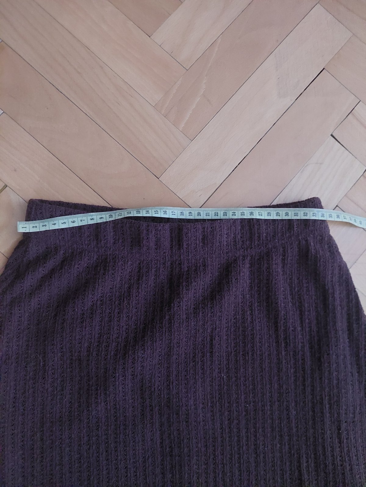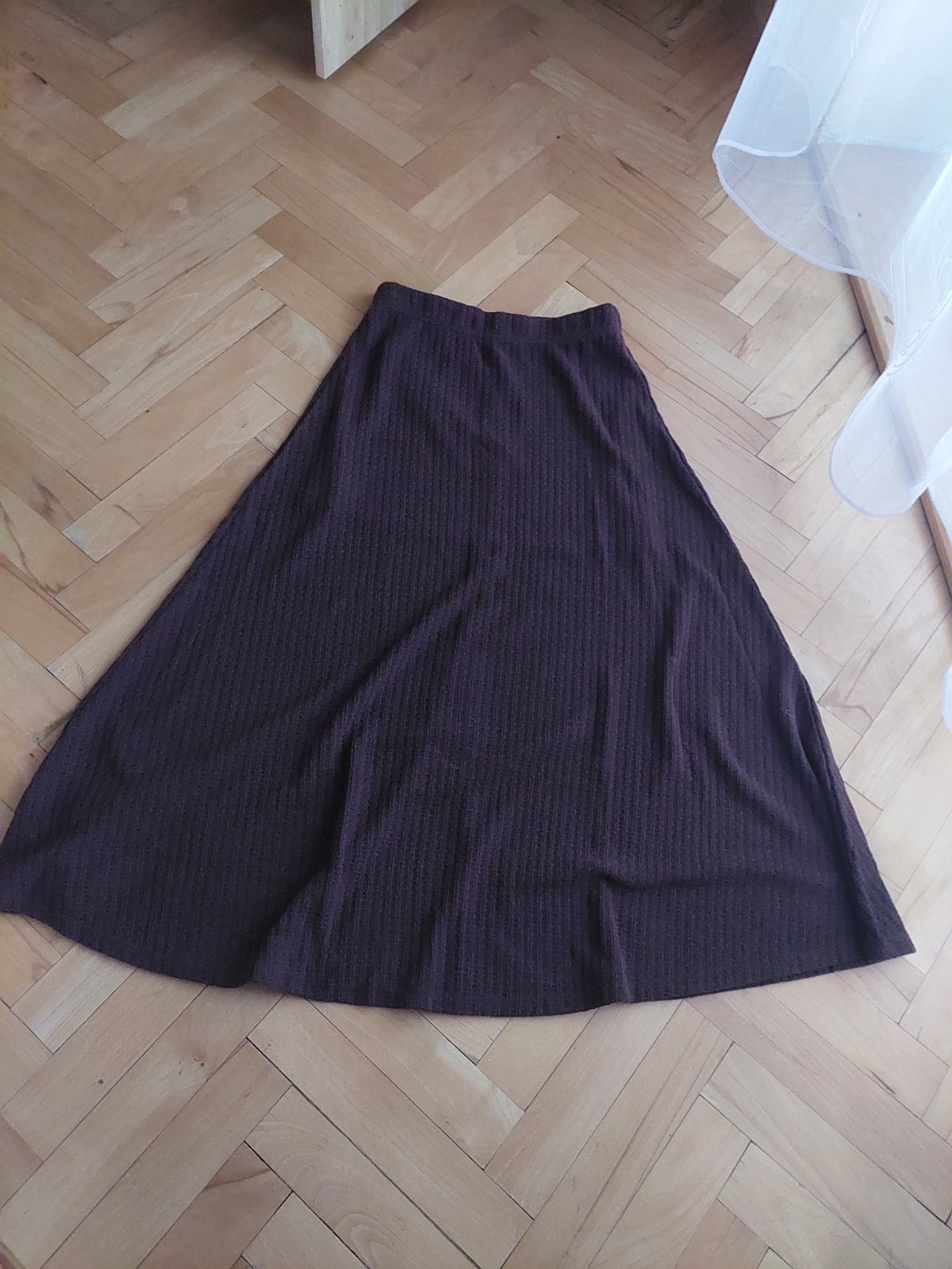 Midi sukňa áčkového strihu z úpletu (pleteniny). Pás na gumičku, prispôsobí sa aj materiál je elastický. Top stav. Rozmery na fotkách.